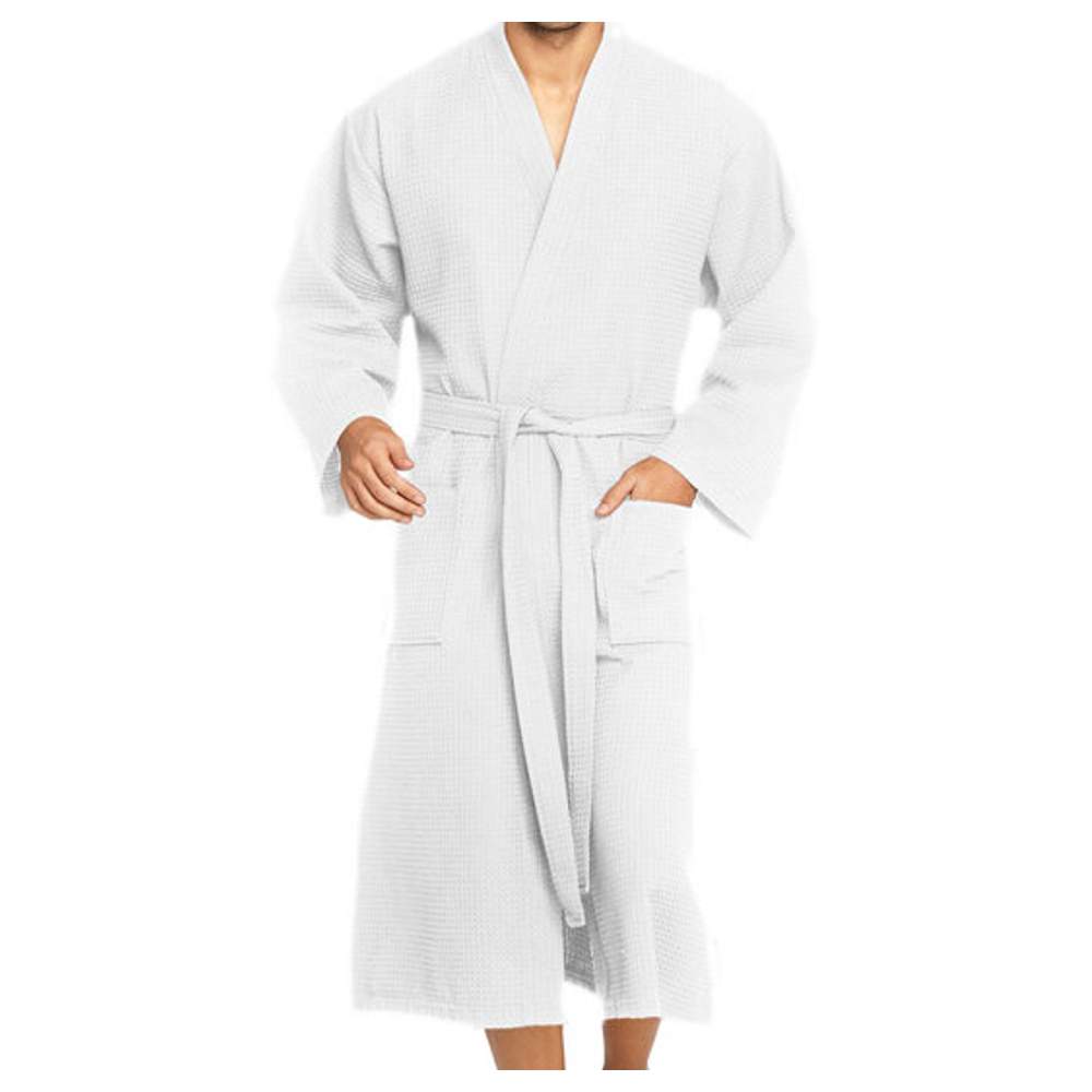 Deze kimono badjas biedt optimaal comfort dankzij zijn licht gebobeld weefsel. De unisex snit maakt hem geschikt voor iedereen. Hij is voorzien van twee praktische voorste zakken om kleine essentiële voorwerpen binnen handbereik te houden. Een ingebouwde riem zorgt voor een persoonlijke pasvorm.