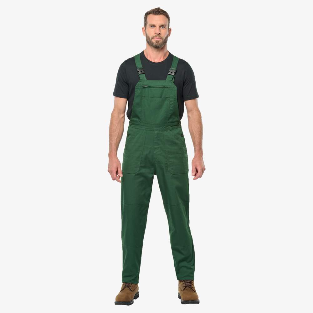 Uniseks werkbroek ontworpen om comfort en functionaliteit te bieden. Het is gemaakt van sergeweefsel voor goede slijtvastheid. Het heeft vijf voorkantzakken, waaronder twee vlakke zakken en een voorzak met ritssluiting met een penzak. Er is ook een vlakke zak aan de achterkant. De banden zijn verstelbaar met een plastic klem, waardoor een persoonlijke aanpassing mogelijk is. Een brede elastiek aan de achterkant zorgt voor meer beweeglijkheid. De sluiting is voorzien van een ritssluiting. De zijopening wordt beveiligd door een dubbele knopbeugel. Een naametiket is aanwezig aan de binnenkant. De naden zijn versterkt en knieversterkingen zijn toegevoegd voor extra duurzaamheid. Een ophanglint is ook inbegrepen.