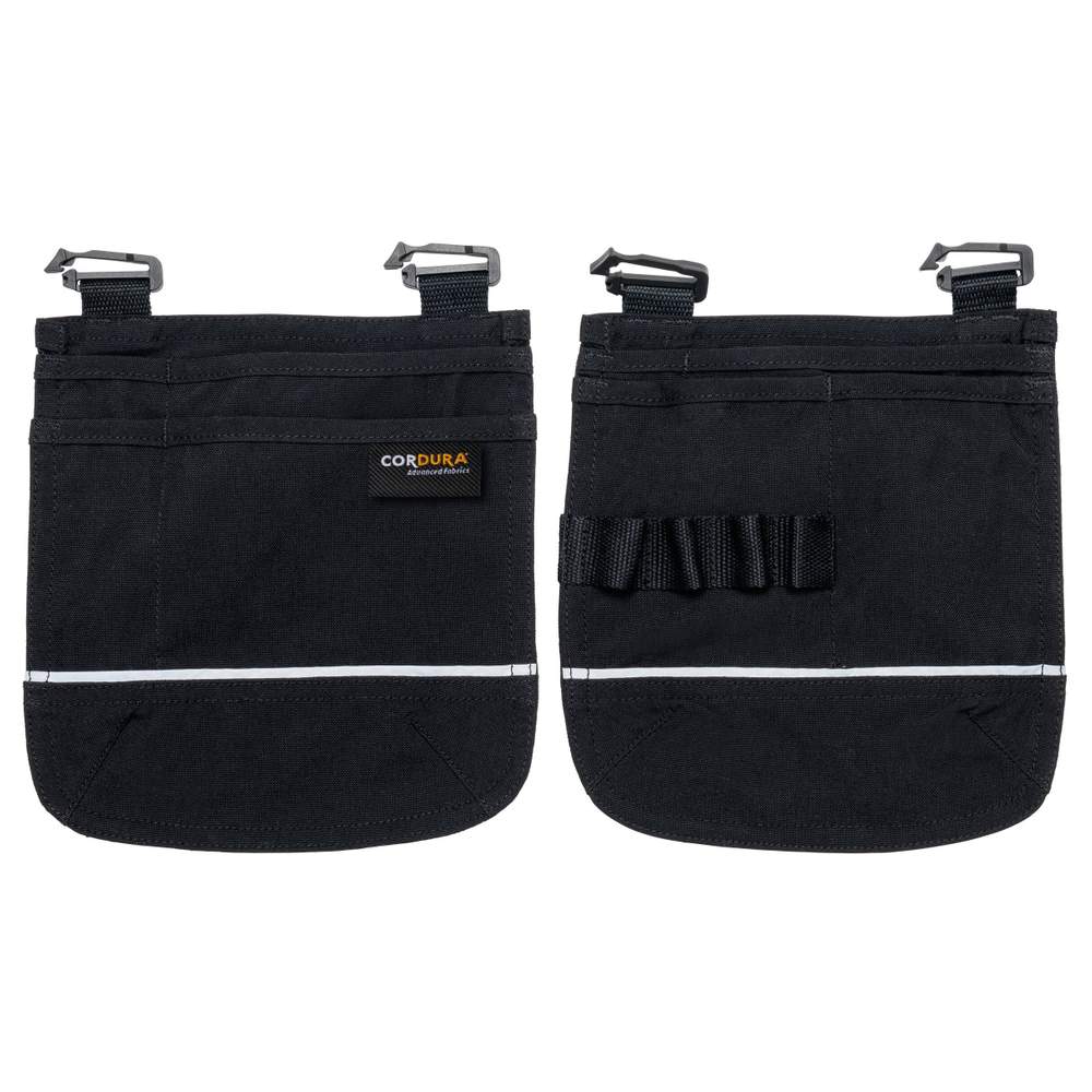 Verwijderbare werktuigentas om het organiseren en vervoeren van gereedschappen te vergemakkelijken. Gemaakt van Cordura® voor duurzaamheid en scheurweerstand. Bevestigingsclips voor eenvoudig bevestigen aan broekenriemen of riem. Verschillende compartimenten voor verschillende gereedschappen. Opslag voor eenvoudig toegang en veilig vervoer. Verkocht per paar.