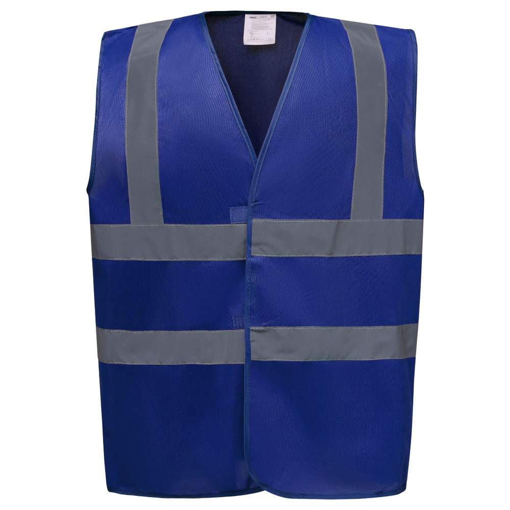 Veiligheidsvest 100% polyester met zelfklevende sluiting. Twee reflectorstralen van 5cm breed rond het lichaam en één op elke schouder. Voldoet aan norm EN ISO20471:2013 categorie 2 voor kleuren Hi-Vis Yellow, Hi-Vis Orange en Orange/Hi Vis Yellow. Voldoet aan norm EN ISO20471:2013 categorie 1 voor kleuren Black/Hi Vis Yellow, Lime/Hi Vis Yellow, Navy/Hi Vis Yellow, Purple/Hi Vis Yellow, Paramedic Green/Hi Vis Yellow, Red/Hi Vis Yellow, Raspberry/Hi Vis Yellow en Royal Blue/Hi-Vis Yellow. Voldoet aan norm EN 1150:1999 PASS voor de kleur Lime.