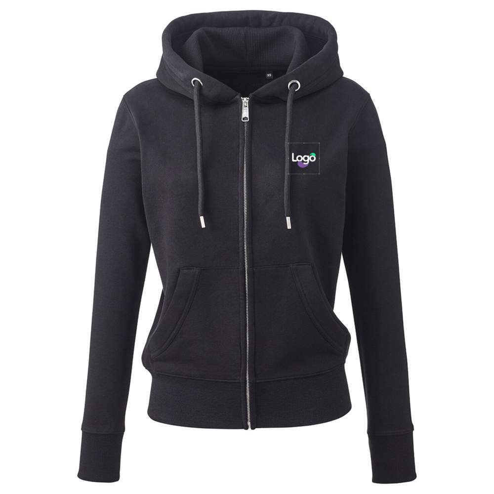 AM004 - Damski sweter z kapturem z całą zapięciem am004 personalizacja - black