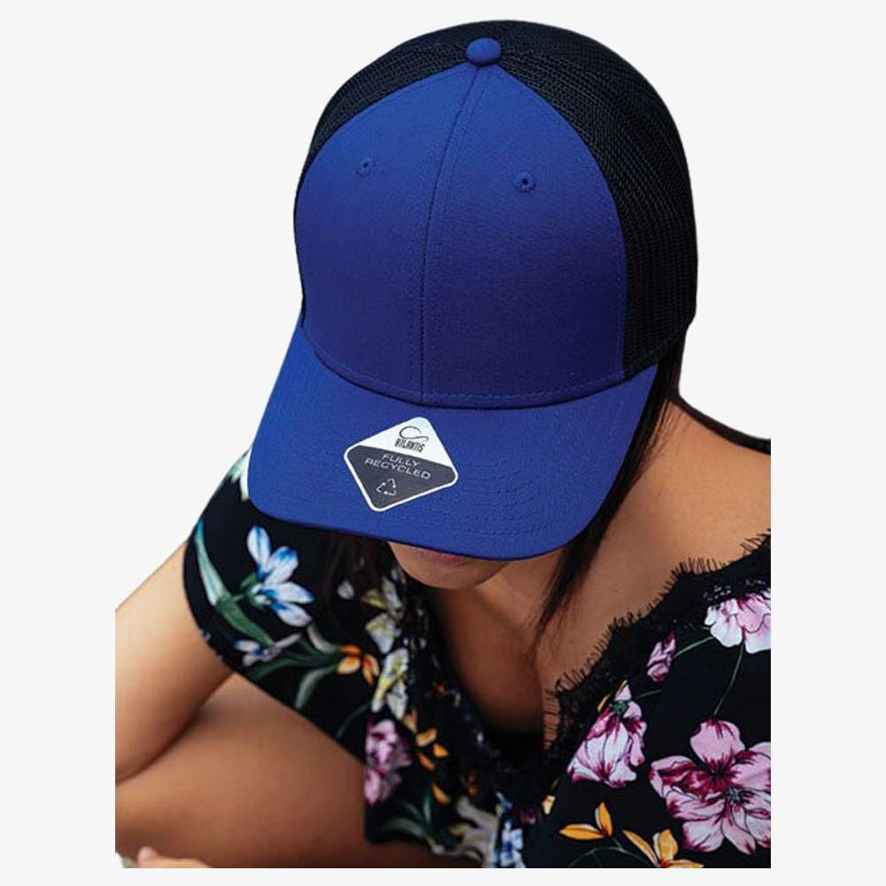 Czołek z sześcioma panelami, wykonany z recyklingowej bawełny poliester. Charakteryzuje się wstążką przednią i zszywkami dla wygodnego i trwałego dopasowania. Sześć szwów na wstążce wzmacniają jej strukturę. Skład zawiera panel przedni i wstążkę z 60% recyklingowej bawełny canvas i 40% bawełny canvas, podczas gdy panele boczne i tylne są z 100% recyklingowego poliestru siatki. Ten czołek został zaprojektowany do dostosowywania, pozwalając na dodanie logo lub określonych projektów poprzez haft, oferując w ten sposób idealne rozwiązanie do promowania swojej marki lub wydarzenia.