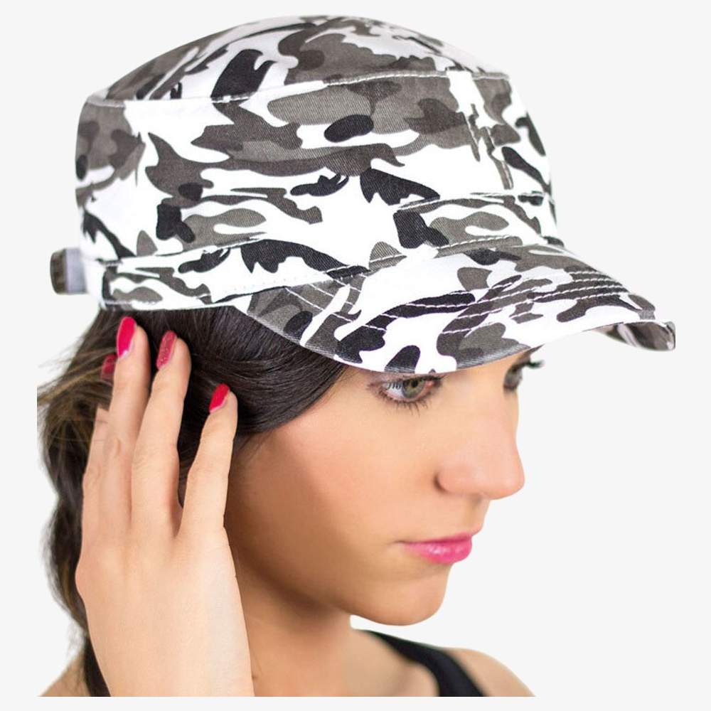Ta czapka w stylu wojskowym jest wykonana z bawełny chino dla optymalnego komfortu. Ma zamknięcie na taśmie klejącą i opaskę z bawełny. Daszek jest wygięty i wzmocniony czterema szwami. Obrabianie wyblakłe nadaje jej wygląd zużyty. Model ten ma zdekonstruowany panel przedni dla unikalnego stylu.