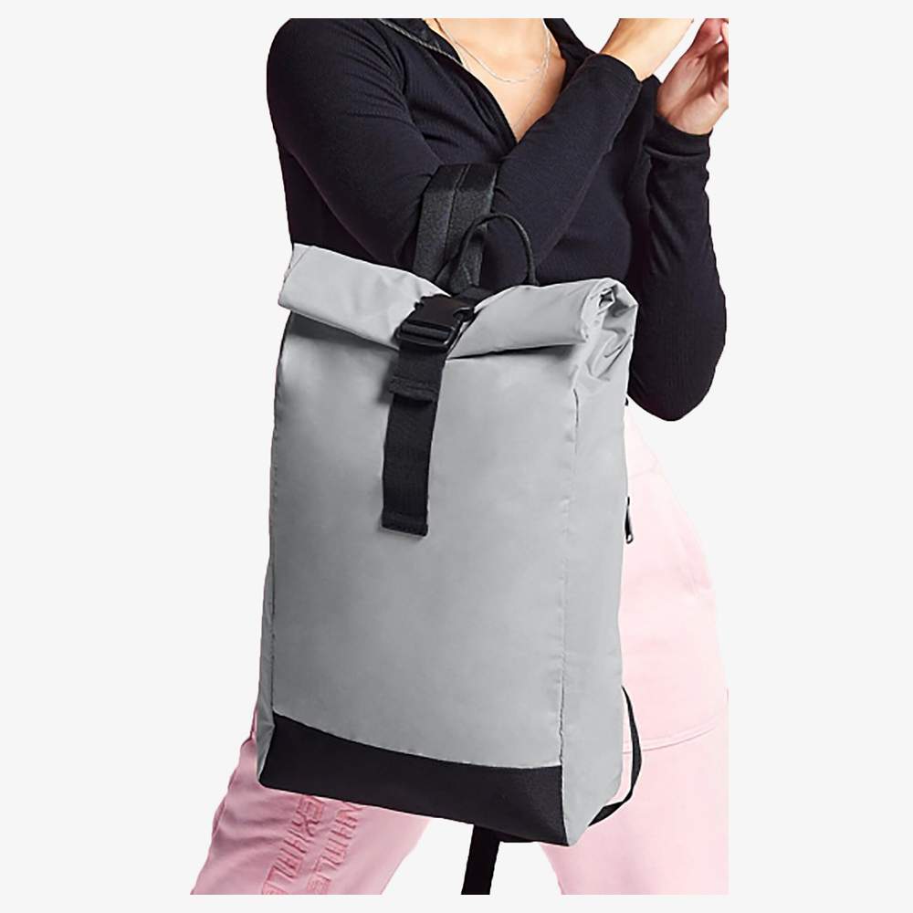 Plecak zaprojektowany z refleksyjnym pokryciem, aby poprawić widoczność. Jego lekka konstrukcja zapewnia trwałość i komfort podczas transportu. Wbudowany uchwyt noszący górny i poduszki na ramionach, regulowane, aby dopasować się do różnych budów ciała. Zamek obrotowy zapewnia bezpieczeństwo przedmiotów osobistych. Zewnętrzna kieszeń na błyskawicę umożliwia szybki dostęp do małych przedmiotów. Etykieta TearAway do łatwego ponownego etykietowania. Ten plecak oferuje pojemność 15 litrów, co czyni go odpowiednim do różnych codziennych użyteczności lub do krótkich podróży. Wymiary: 26 x 43 x 13 cm. Skład: 85% poliester, 15% bawełna.