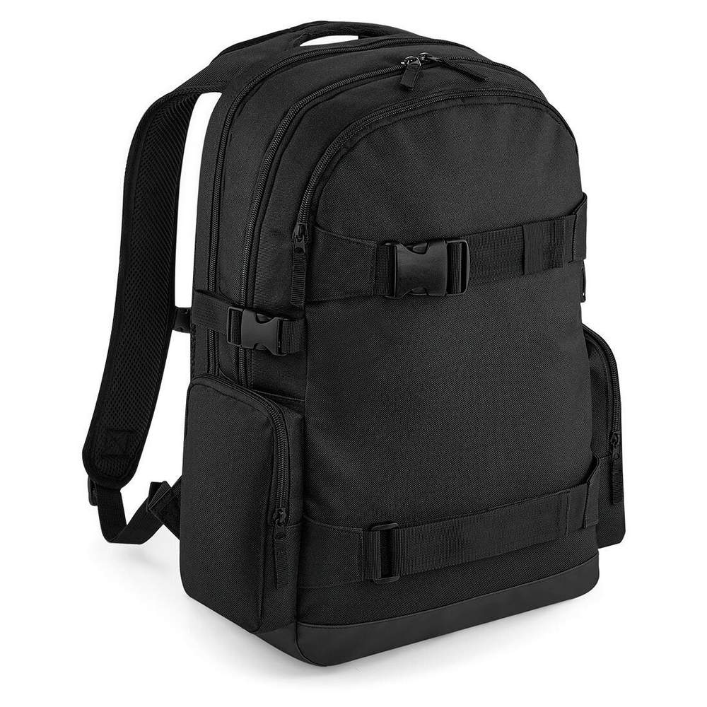 Plecak zaprojektowany do transportu deskorolki i laptopa. Wyposażony w rękojeści i panel tylny wzmocnione dla większego komfortu. Plecak posiada pasy kompresyjne i pasy transportowe do mocowania deskorolki. Oddzielne przedział na laptopa o wymiarach do 17 cali z wygodnym dostępem z zewnątrz. Wewnętrzna kieszeń na przedmioty, zewnętrzna kieszeń z zapięciem błyskawicznym i boczne kieszenie oferują dodatkowe możliwości przechowywania akcesoriów. Etykieta TearAway pozwala na łatwe ponowne etykietowanie.