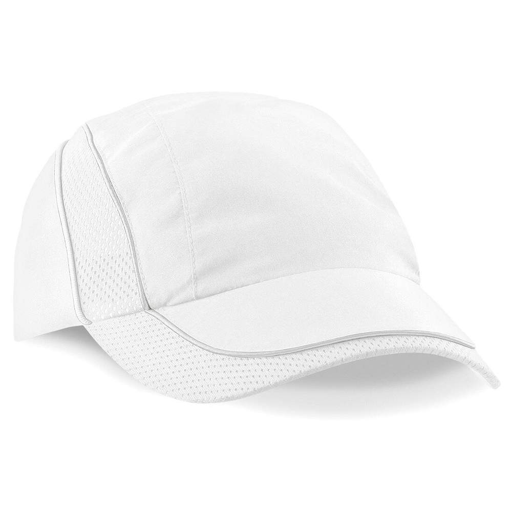 Czapka z wygiętym daszkiem, którego powierzchnia przednia jest centrowana i bez szwu. Jej panele są z siatki dla wentylacji. Posiada pasek przeciwpotowy Coolmax i części odblaskowe, poprawiające widoczność. Regulowana za pomocą taśmy klejącej. Ta czapka jest personalizowalna haken, aby włączyć swój logo lub wizualizację. Rozmiar jeden. Skład: 100% poliestru - mikrofibry.