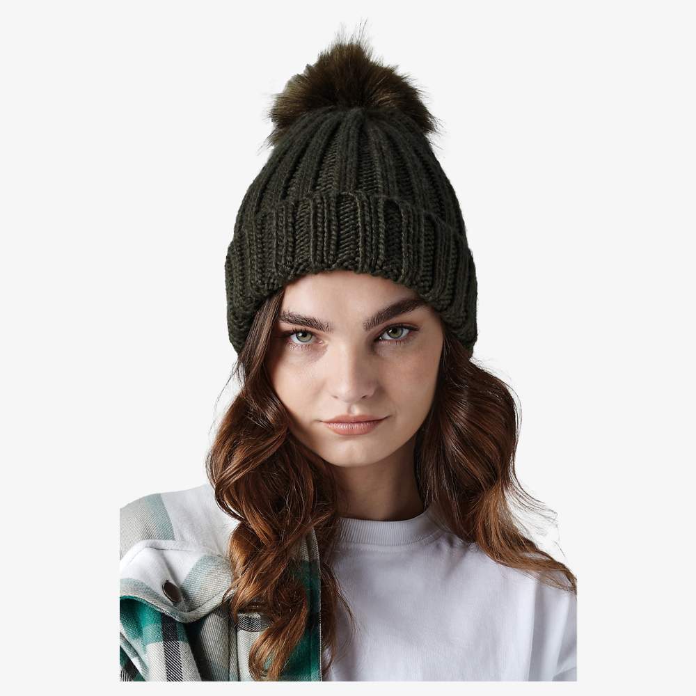 Ta czapka ma grubą, kętowaną trykotę dla zwiększonego komfortu. Jest zaprojektowana z odłączalnym fałszywym pomponem i odwrotnym designem. Jej uniwersalny rozmiar nadaje się dla większości obwodów głowy. Jest wyprodukowana z akrylu. Ta czapka oferuje uniseksowy styl i praktyczne rozwiązanie do ochrony przed zimnem.