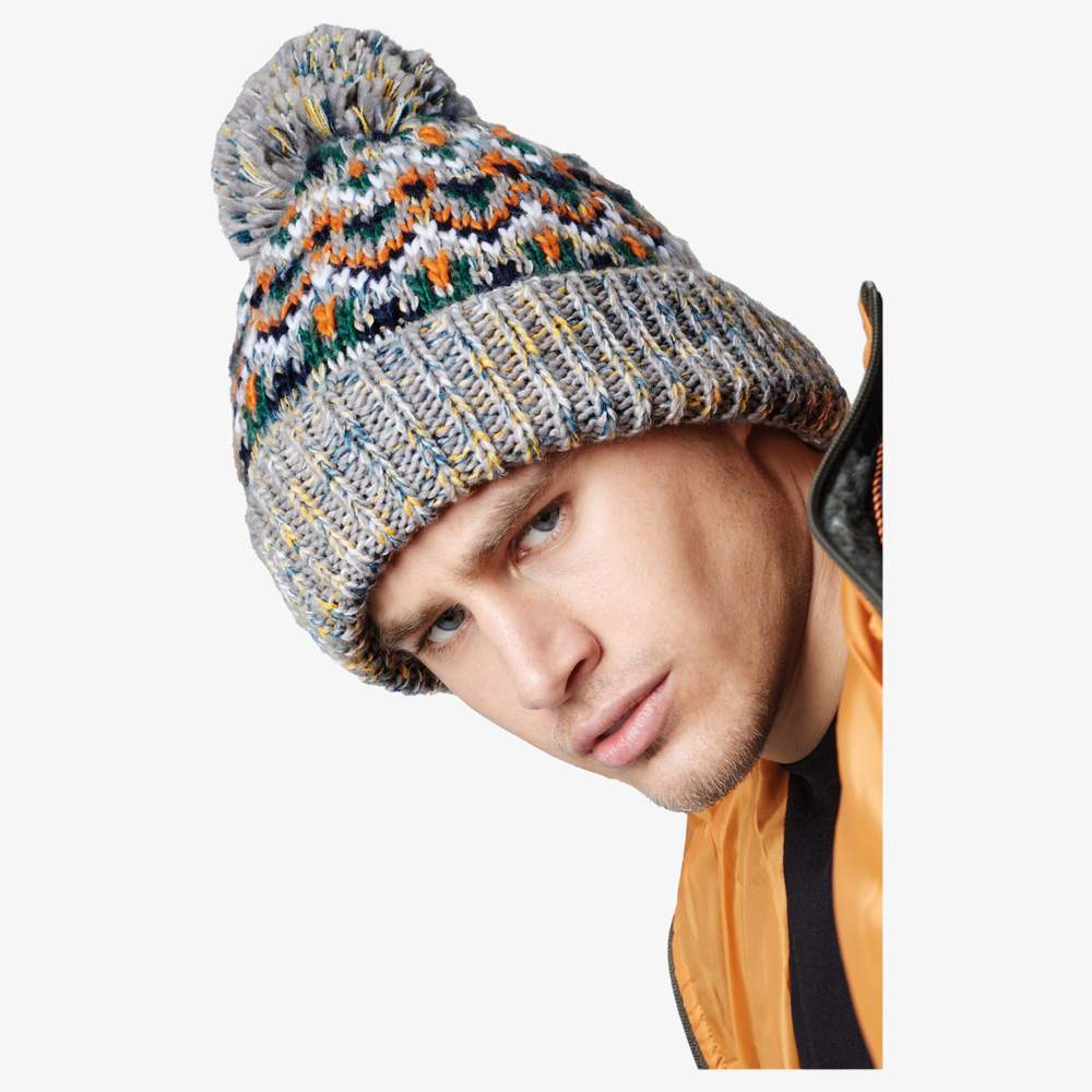 Ta czapka została zaprojektowana z odwróconą strukturą dla optymalnej personalizacji. Jest wyposażona w jednokolorowy pompon i nowoczesny wzór geometryczny. Jednorodny rozmiar zapewnia komfortne noszenie dla większości użytkowników. Odetknięta etykieta zwiększa komfort.