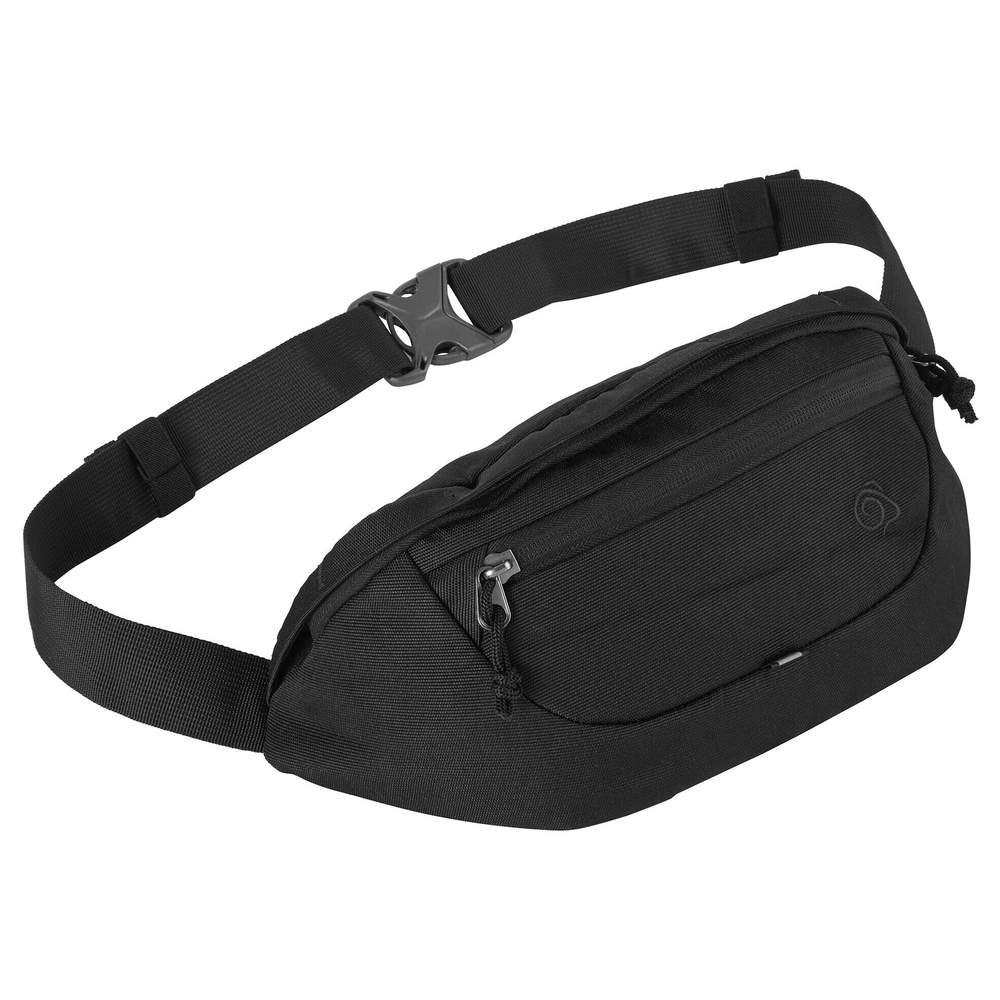 Mała praktyczna sakwka zaprojektowana z odpornej na wodę tkaniny. Oferuje kilka kieszeni, w tym kieszeń paszportową RFID dla ochrony danych osobowych. Może być noszona wokół talii lub przez ramię do wielofunkcyjnego użytku. Jej wymiary to 28x14x10cm. Szczegół odblaskowy jest obecny dla lepszej widoczności. Sakwka jest wyposażona w odwróconą część z PU i zamek błyskawiczny z recyklingu.