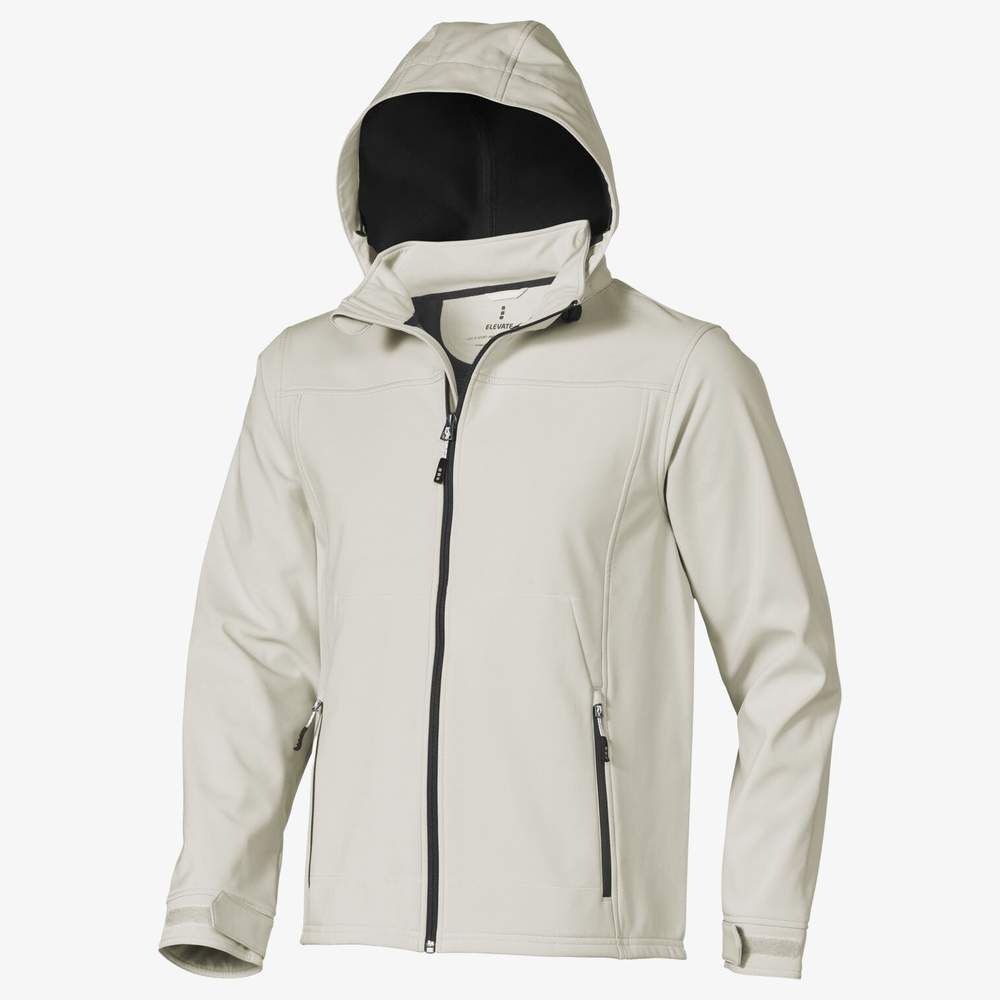 Ta męska kurtka softshell zapewnia optymalny komfort dzięki swojej rozciągliwej tkaninie i odłączanej kapturze z elastycznym sznurem. Ma zamknięcie na zamek błyskawiczny odwrócony z przodu i dla kieszeni. Jej odporność na wodę zapewnia skuteczną ochronę przed niepogodą. Kurtka jest certyfikowana wg standardu Oeko-Tex® 100, co gwarantuje brak szkodliwych substancji. Personalizacja hako pozwala dodać swój logo lub wzór w celu uzyskania unikalnego i personalizowanego przedmiotu.