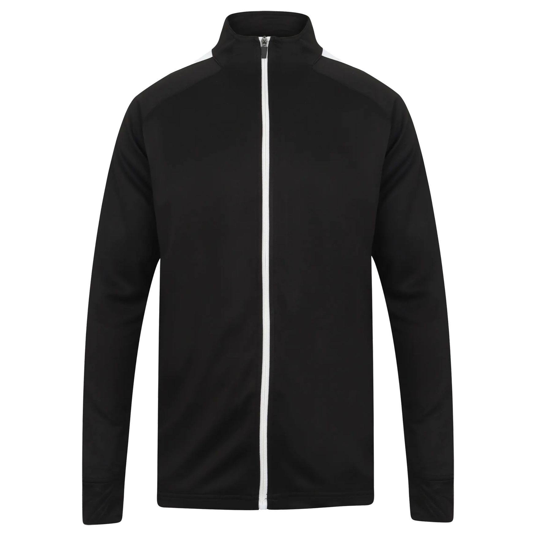 Dzianinowa bluza dresowa nadaje się do aktywności sportowych i codziennego użytku. Duży kontrastowy zamek, kontrastowe pasy na ramionach i rękawach, boczne kieszenie zapinane na zamek, szczotkowane wnętrze, ściągacze 1x1 oraz kołnierz kominowy.