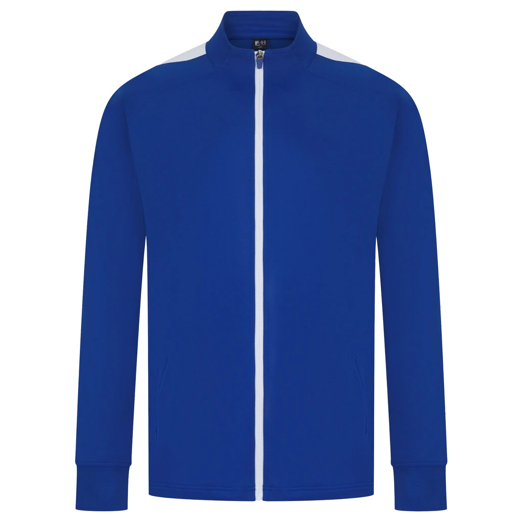 Dzianinowa bluza dresowa nadaje się do aktywności sportowych i codziennego użytku. Duży kontrastowy zamek, kontrastowe pasy na ramionach i rękawach, boczne kieszenie zapinane na zamek, szczotkowane wnętrze, ściągacze 1x1 oraz kołnierz kominowy.