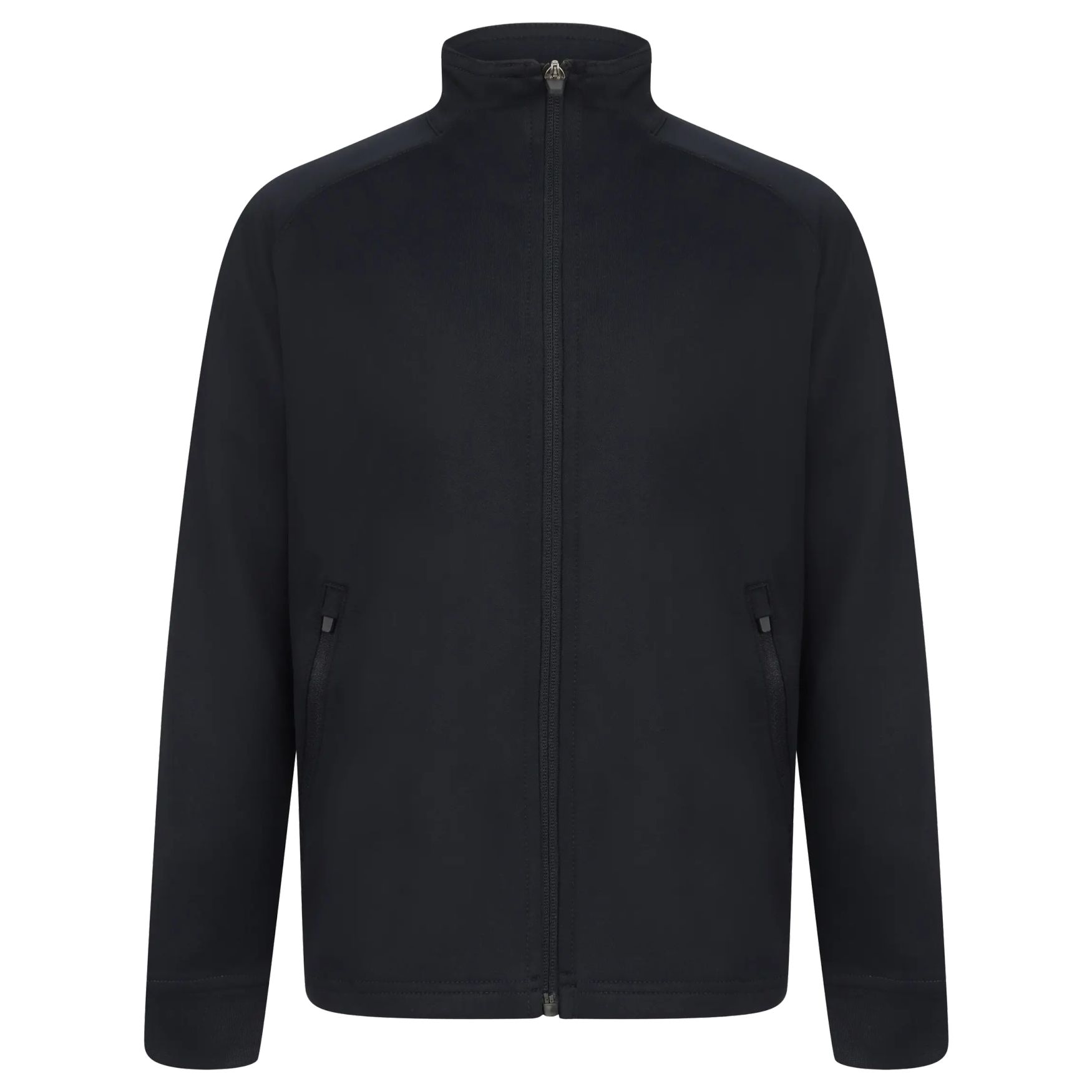 Dzianinowa bluza dresowa to dziecięca kurtka sportowa z kontrastowym zamkiem błyskawicznym, kontrastowymi pasami na ramionach i rękawach, bocznymi kieszeniami na zamek, kołnierzem typu stójka i ścigaczowymi mankietami.