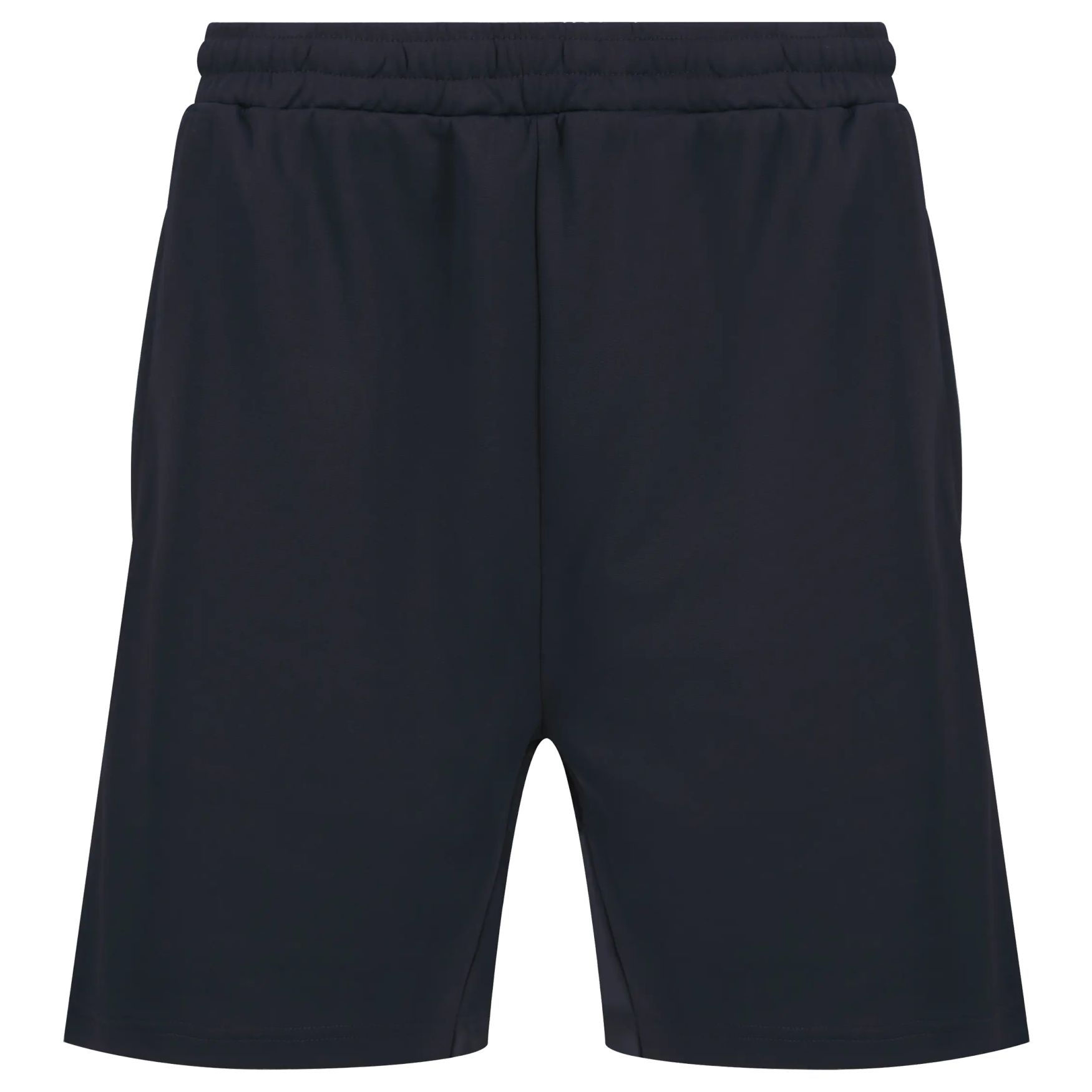 Dzianinowe spodenki z zamkami nadają się do aktywności sportowych dzięki elastycznemu pasowi i wewnętrznemu sznurkowi do ściągania. Kieszenie na zamek w bocznych szwach ułatwiają przechowywanie, a kontrastowe panele boczne porządkują krój.