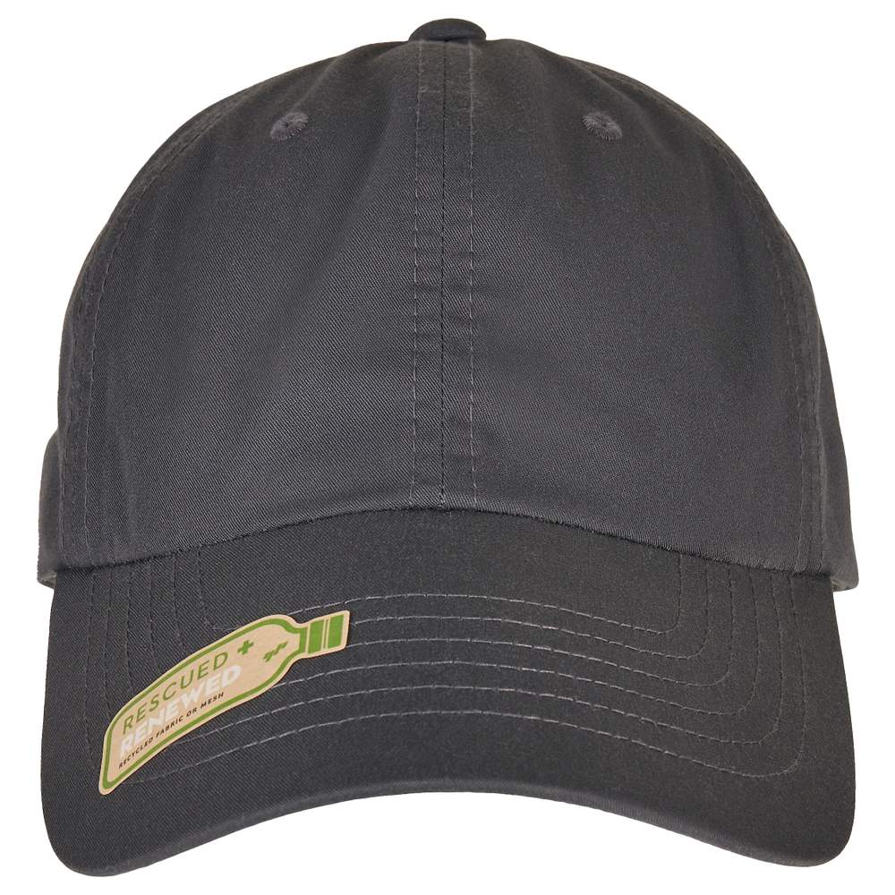 Ten klasyczny czepek jest wykonany z ekologicznego materiału wytworzonego z recyklingowanego poliesteru. Jest jednokolorowy, ma wygięty daszek z równoległymi szwami i jest regulowany za pomocą paska z metalową zaczepką z tyłu głowy. Oferuje komfortowe i trwałe dopasowanie do codziennego użytku.