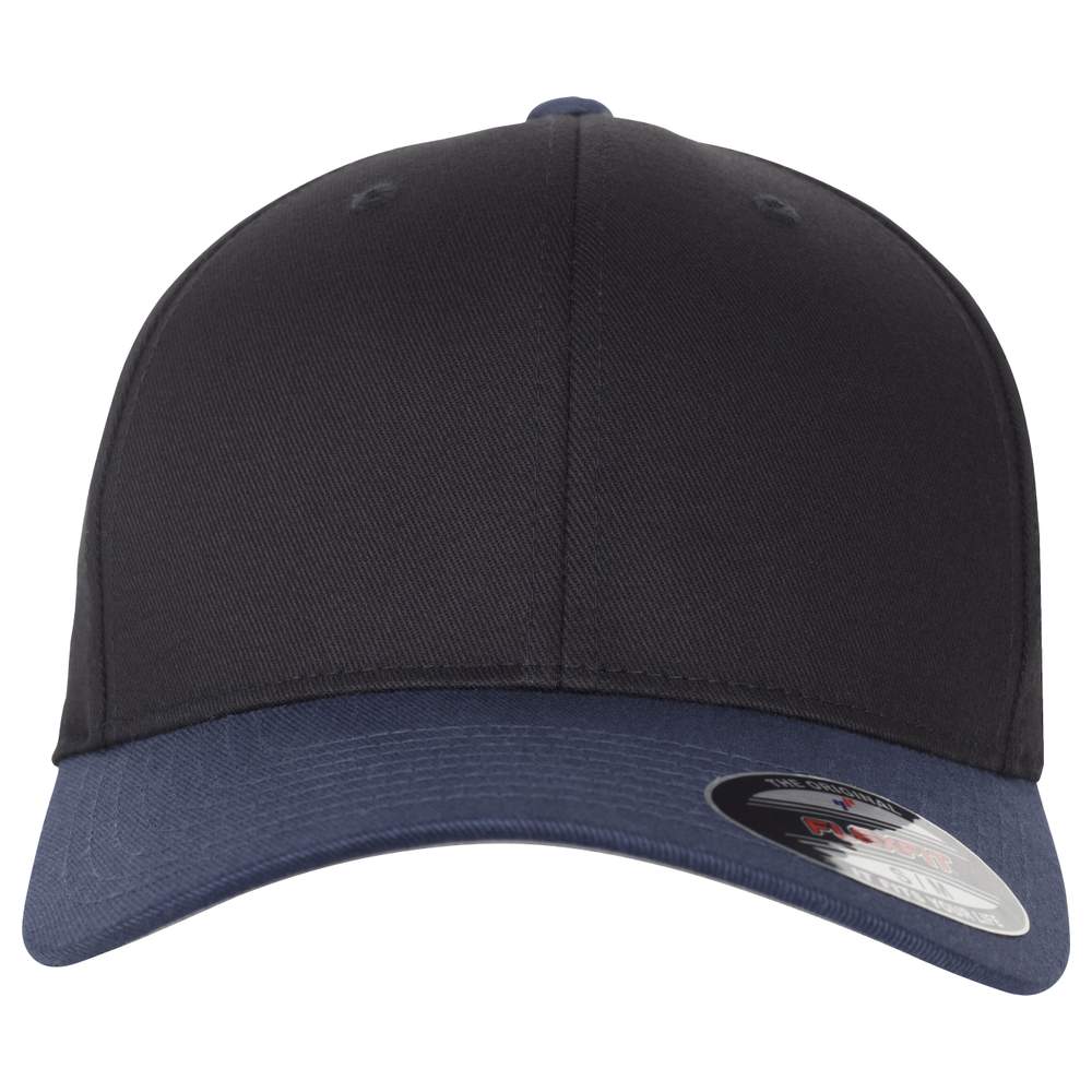 Dwukolorowa czapka Flexfit z wełny. Sportowy kształt. Sztywny przedni część. Srebrny poddaszek. Absorbuje pot. 6 panelów. Daszek z 8 rzędami szwów. Daszek z wyprzednim wygięciem. Skład: 63% poliestru, 34% bawełny, 3% elastanu