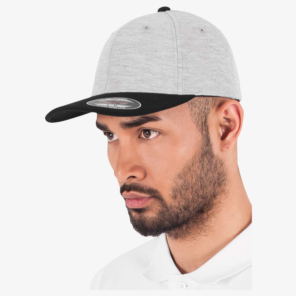 Dwukolorowa czapka z elastycznego jersey, zapewniająca komfort i elastyczność. Jej przednia część jest sztywna, co zapewnia dobrą trwałość. Składa się z 6 paneli i posiada wygiętą daszek z wnętrzem w pasujących kolorach. Tkanina zewnętrzna składa się z 66% poliesteru, 30% bawełny i 4% elastanu. Ta czapka jest spersonalizowana, pozwalając na dodanie logo lub wizualizacji przez haft.