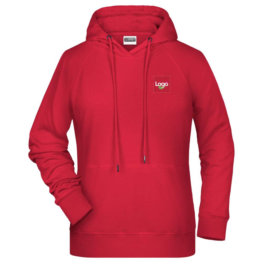 Damski sweter z kapturkiem, lekko przylegający, z rękawami raglan. Wysokiej jakości tkanina przeciwpotna, wewnętrzna warstwa jest miękka. 85% organicznego bawełny filowanej w pierścieniu, 15% poliestru. Possess a double-layer hood with drawstring, side seams in front and kangaroo pocket. Elastane cuffs. Detachable label. Composition: 85% cotton, 15% polyester. This hoodie offers an excellent base for embroidery customization, allowing you to add your logo, a visual or any other graphic element for effective communication.
