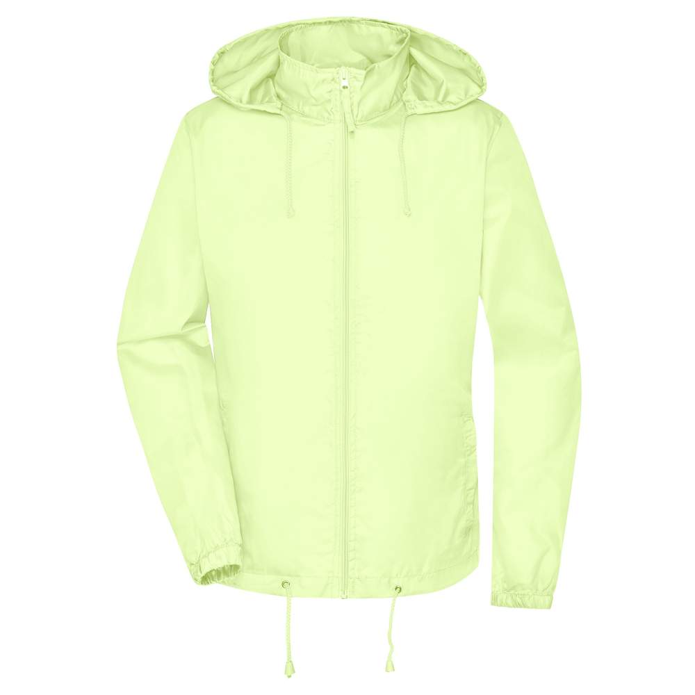 Kurtka dla kobiet, w ciasnej pasie, wykonana z lekkiego materiału poliestrowego z powłoką wiatrzuprzeciwną i odporną na wodę (poziom wody 600 mm). Jest wyposażona w sznurówkę na dole, dwie boczne wewnętrzne kieszenie, wbudowany kaptur ze sznurówką na kołnierzu i elastyczne obrzeża na rękawach. W kieszeni bocznej jest praktyczne miejsce na przechowywanie, a elastyczny pas zapewnia komfortowe noszenie wokół talii.