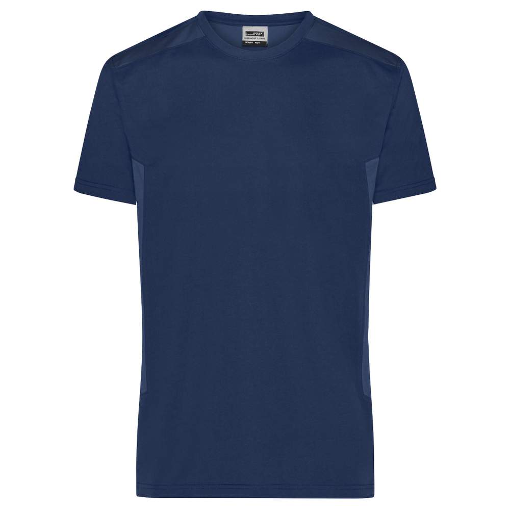 Wytrwała i łatwa w utrzymaniu koszulka, przeznaczona do użytku zawodowego. Łączy mieszankę organicznego bawełny filowanej na pierścieniu i recyklowanego poliestru, co zapewnia stabilny kształt i zwiększoną odporność na pranie. Boki i ramiona mają kontrastujące kolory dla eleganckiego wyglądu. Kark zawiera elastan dla optymalnego komfortu. Obecna jest taśma czystości.
