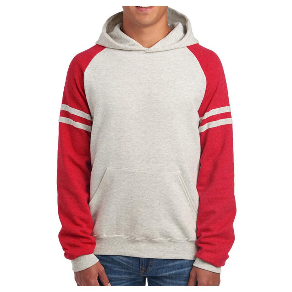 Polar z kapuściem NuBlend® wstępnie wysuszone i anty-pilling. Wykonany z trwałego bawełny pochodzenia amerykańskiego. Wysoka gęstość punktów dla gładkiej strefy druku. Korpus z oatmeel chinés dla wyglądu jednocześnie vintage i nowoczesny. Długie rękawy raglan kontrastowe. Rękawy z paskami w stylu uniwersyteckim. Centralny kieszeń. Naramienniki i pasek z kostką 1x1. Tkanina obrócona o ćwierć obrotu, aby usunąć centralną fałdę. Odłączalna etykieta.