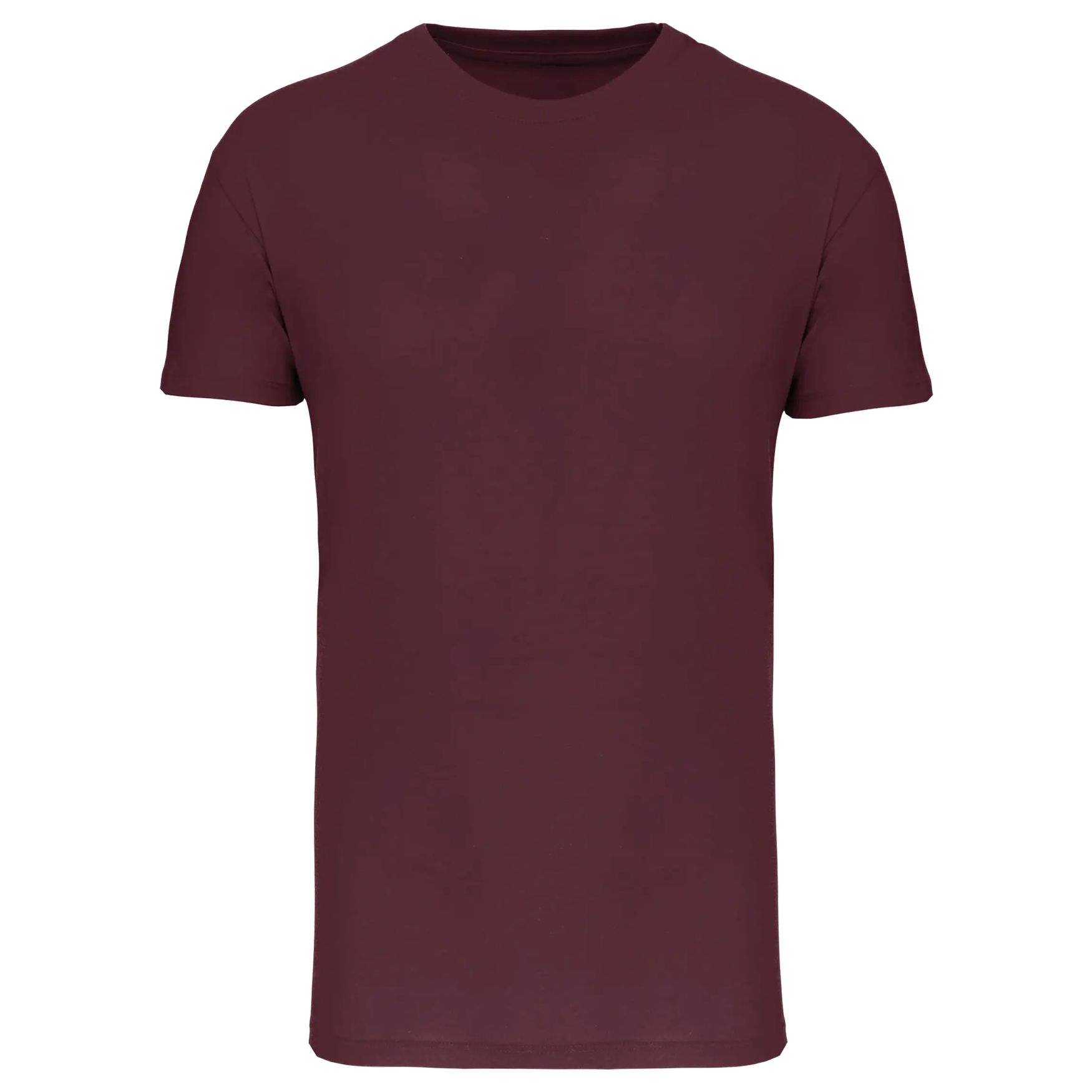 Bio koszula dla dziecka. Ucięta szyta. Okrągły kołnierz z bordowym i elastanem. Pas do czystości w tym samym tonie na kołnierzu. Podwójna nitka na dole rękawów i spodzie ubrania. Certyfikowane STANDARD 100 by OEKO-TEX® Nr CQ1007/7, IFTH.