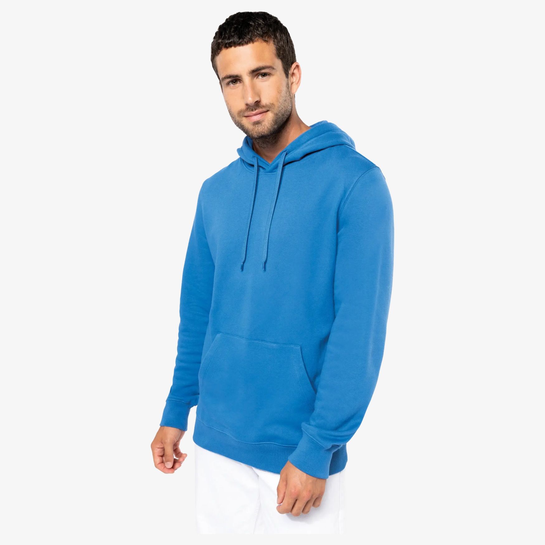 Bluza z kapturem to uniseksowa bluza z kapturem z drapaną dzianiną dresową, z kieszenią kangurką i prostym krojem. Kaptur z podszewką z dżerseju bawełnianego i płaski sznurek ściągający. Wyprodukowana w Portugalii.