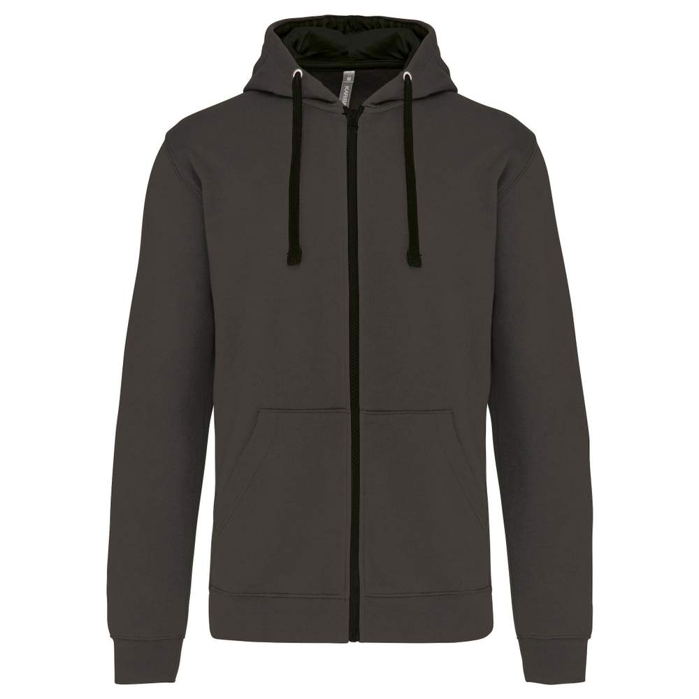 Blazer zippowany kaptur kontrastowy, wykonany w 80% z bawełny czesanej i 20% poliestru. Charakteryzuje się molletonem gratté dla zwiększonego komfortu. Ten blazer wyposażony jest w pasażek dla słuchawek zintegrowany w kieszeni kangurze i wycięcie kołnierza. Pasy elastyczne na dole rękawów i ubrania zapewniają optymalne dopasowanie. Kaptur jest podwójny i kontrastowy, z sznurkiem regulacyjnym dla indywidualnego dopasowania. Kontrastowy zip YKK® dodaje stylu.