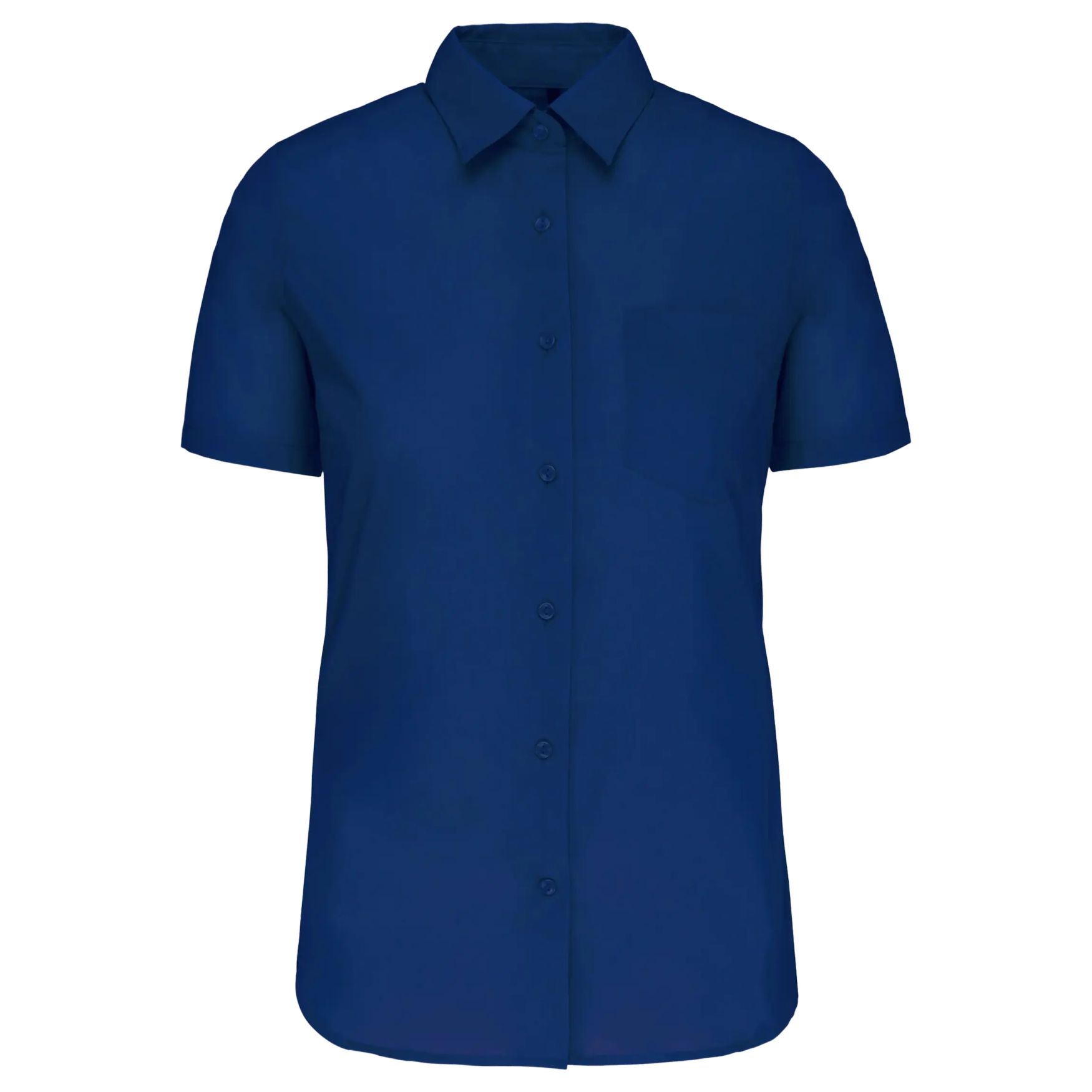 Ta bluzka dla kobiet jest wykonana z mieszanki poliestru i bawełny, co zapewnia optymalny komfort i dobrą stabilność. Charakteryzuje się klasycznym krojem z krótkim rękawem, idealnym na gorące dni lub ubrania codzienne. Jej staranna konstrukcja gwarantuje wytrwałość. Jest wyposażona w nieprzyciskowy kołnierzyk i przyciski w kolorze materiałów dla dyskretnego i eleganckiego wyglądu. Jedna nałożona kieszeń na klatce piersiowej dodaje praktyczności.