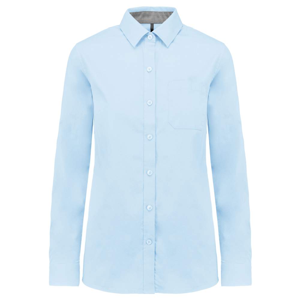 Ta koszula dla kobiet jest wykonana z 100% bawełny serowej, zapewniając miękkie i komfortowe dotknięcie. Ma klasyczny kroj z długimi rękawami i kieszeną piersiową. Szczegóły obejmują podszewkę wokół kołnierza i kontrastowe mankiety w kolorze Oxford silver, a także plecy z fałdem komfortu i wkładką. Wykończenia obejmują schowane szwy i regulowany mankiet z przyciskowaną klapką. Przycisk przypominający uzupełnia ten projekt.