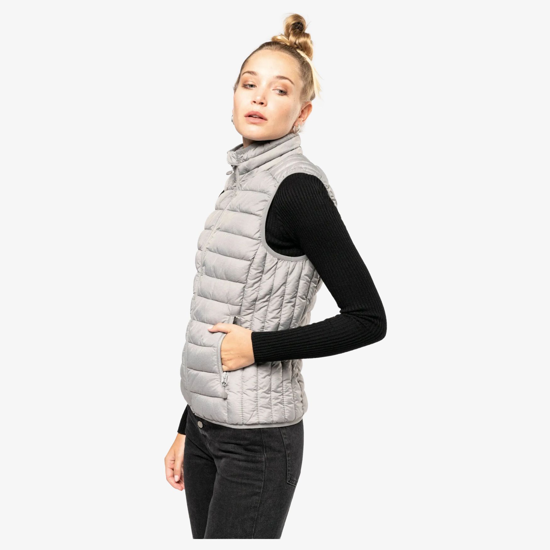 Ten kobiecy bodywarmer bez rękawów został zaprojektowany tak, aby zapewniał ciepło i lekkość. Wykonany jest z 100% poliamidu z wypełnieniem wewnętrznym z poliesteru, można go skompresować w jego torbie na przechowywanie, co ułatwia transport. Ma dwie przednie kieszonki na suwak do umieszczania swoich rzeczy. Wnętrze kontrastowe nadaje mu stylowy wygląd. Ta bezrękawnica jest odpowiednia dla różnych aktywności i może być noszona w każdej porze roku.
