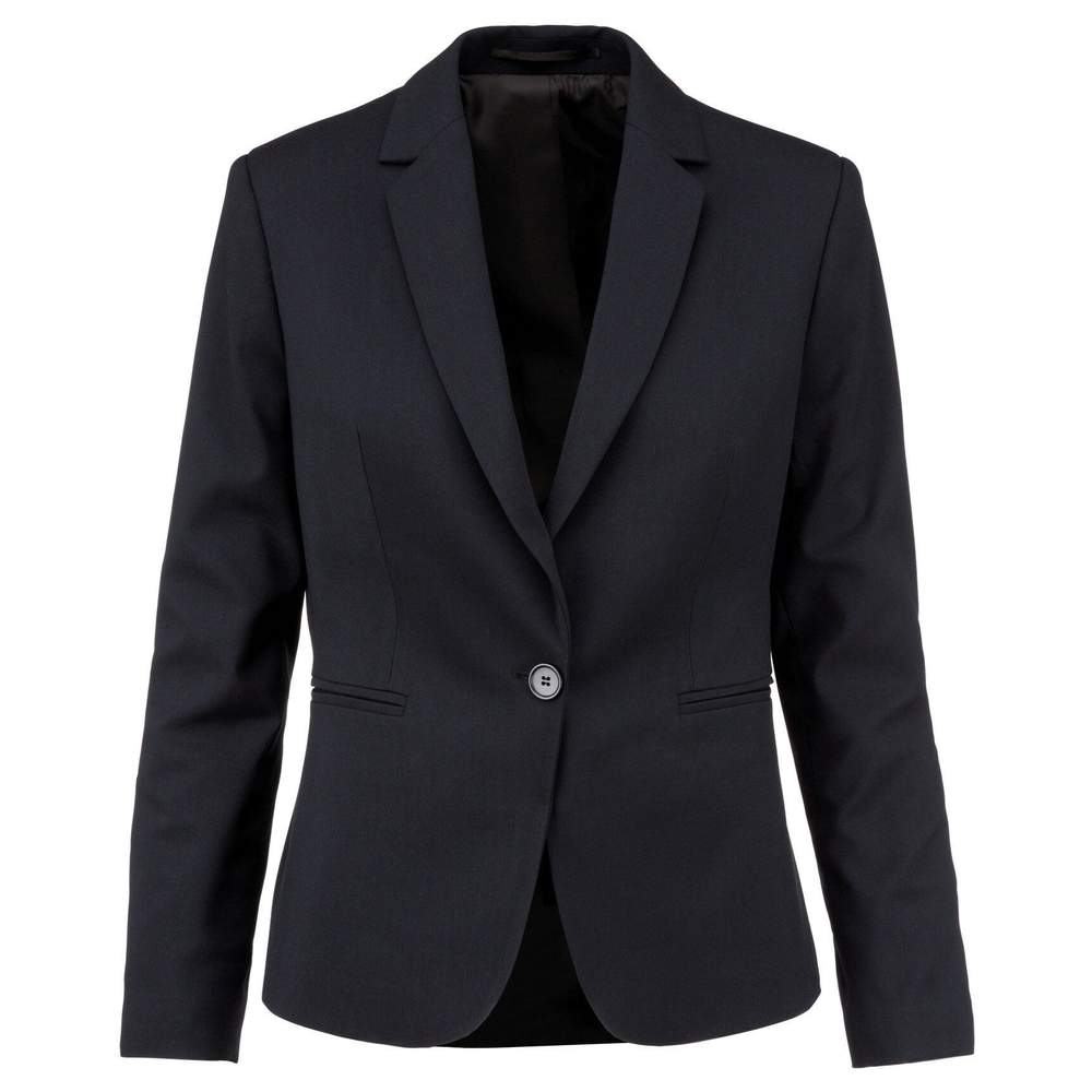 Kobieta kostiumowa kurtka z wyrobem wewnętrznym. Klasyczny kroju, ta kurtka zapewnia optymalny komfort. Jest wykonana z materiału odpornego i przyjemnego w noszeniu. Dwa pasemkowe kieszenie z przodu i dwa wewnętrzne kieszenie z guzikami na zapięcie zapewniają praktyczne przechowywanie. Rękawy są zakończone trzema guzikami, a szpara na plecach zapewnia swobodę ruchu. Ta kurtka jest odpowiednia do użytku zawodowego lub osobistego.