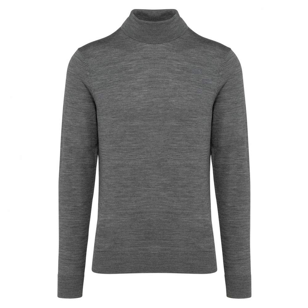 Męski sweter merynosowy z wysokim kołnierzem pk912 - Grey heather