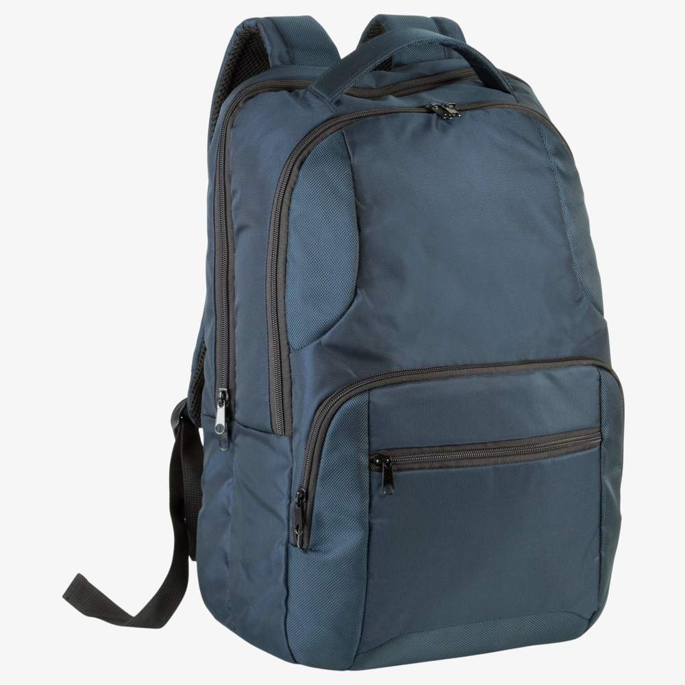 Biznesowy plecak na laptop z poliesteru 1680D z kontrastowymi detalami z poliesteru jacquard. Oferuje wypełniony przedział zaprojektowany do pomieszczenia laptopa o maksymalnie 15 calach. Zawiera centralny przedział na dokumenty, miejsce dla tabletu i wewnętrzną zipsową kieszeń na bezpieczne przechowywanie osobistych przedmiotów. Dwie przednie zipsowe kieszenie zapewniają szybki dostęp do małych przedmiotów. Ergonomiczne ramię i wypełnione plecy zapewniają optymalny komfort, nawet podczas długotrwałych podróży. Wbudowane zamocowanie do trolley pozwala łatwo zamocować plecak do wózka, ułatwiając transport.