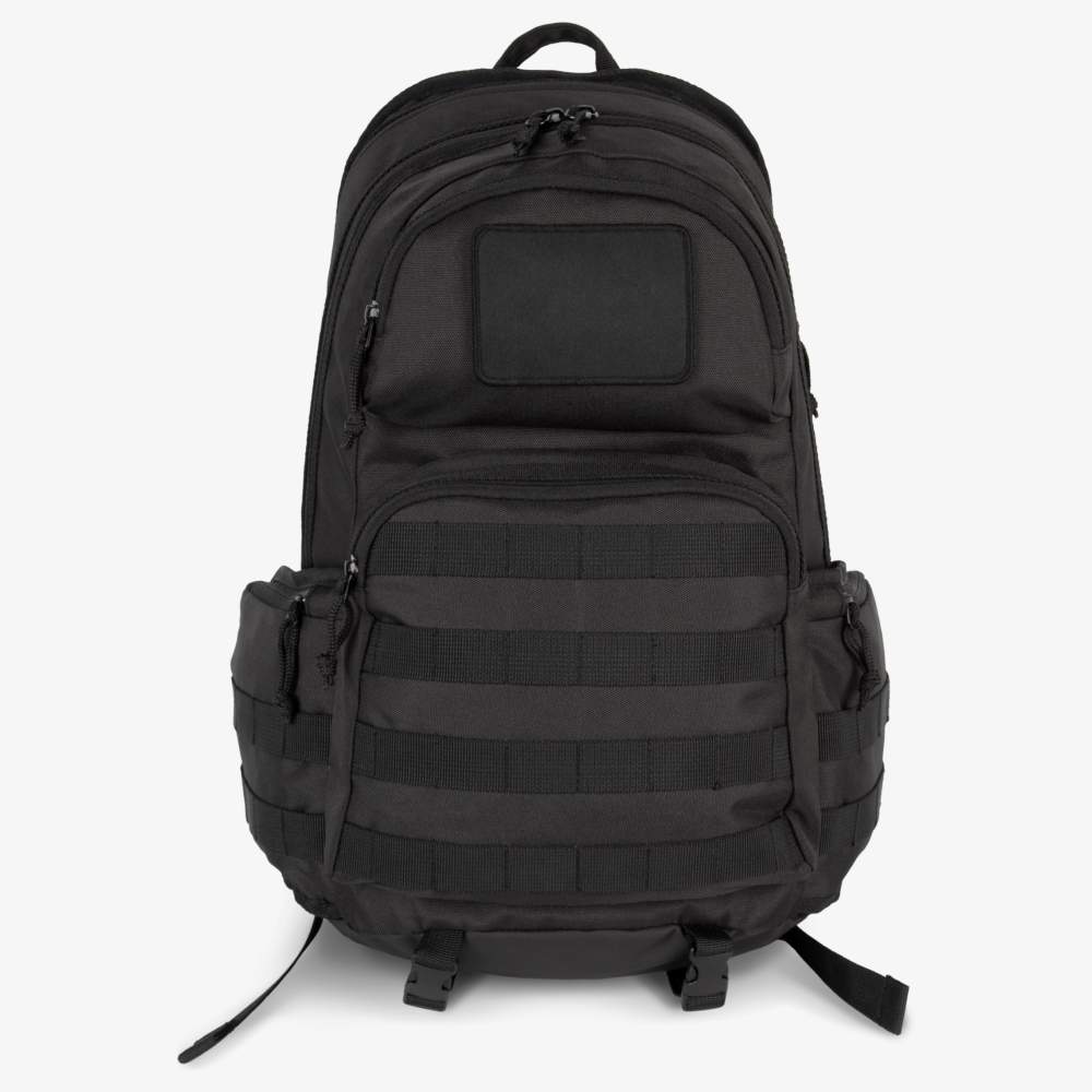 Takticzny plecak wykonany z poliestru, łączący inspiracje wojskowe z nowoczesnym stylem miejskim. Ten plecak jest wyposażony w system mocowania MOLLE, który pozwala na dodawanie modułowych akcesoriów. W skład wyposażenia wchodzi przednia kieszeń z powierzchnią patch, która jest zdjęta i zamocowana za pomocą taśmy samoczepnej, oraz boczne kieszenie wyposażone w taśmy do akcesoriów. Wewnątrz znajduje się kompartiment na laptop lub tablet do 15 cali oraz duże centralne kompartiment na główne przechowywanie. Kieszeń bezpieczeństwa antykradzieżowa umieszczona z tyłu chroni przedmioty osobiste.