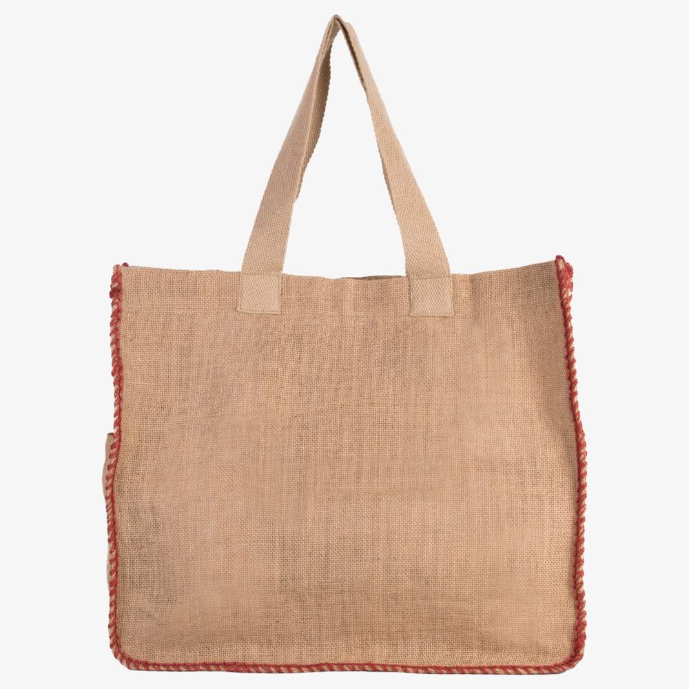 Torba na zakupy z juty i bawełny, zaprojektowana do codziennego użytku lub podczas wydarzeń. Ma kontrastowe szwy z nitki jutowej na bokach, co nadaje jej wyjątkowy wygląd. Wewnętrzna kieszeń z juty oferuje dodatkową przestrzeń do przechowywania. Rękojeści z bawełny zapewniają wygodne trzymanie. Ta torba jest praktycznym i ekologicznym rozwiązaniem do transportu rzeczy. Można personalizować tę torbę swoim logiem, wiadomością lub wzorem według własnego wyboru, co czyni ją doskonałym nośnikiem komunikacyjnym dla Twojej marki lub oryginalną ideą na prezent.