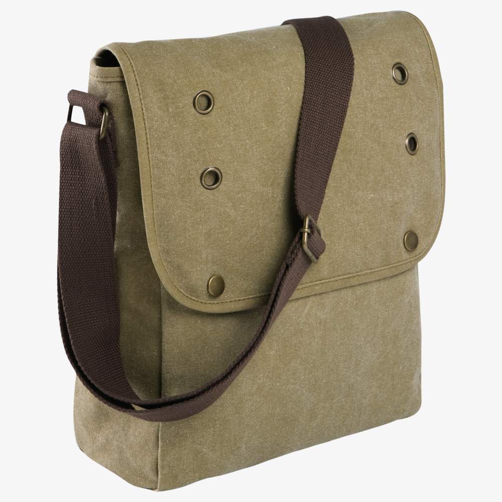 Torebka z płótna zblakniętego z regulowaną rączką dla stylu vintage. Ma wewnętrzny kieszeń do przechowywania. Jej pojemność 7 litrów pozwala zabrać niezbędne rzeczy. Klipy i uszy są zakończone starą mosiądzem dla eleganckiego wyglądu. Wymiary: 26 cm x 11 cm x 32 cm.