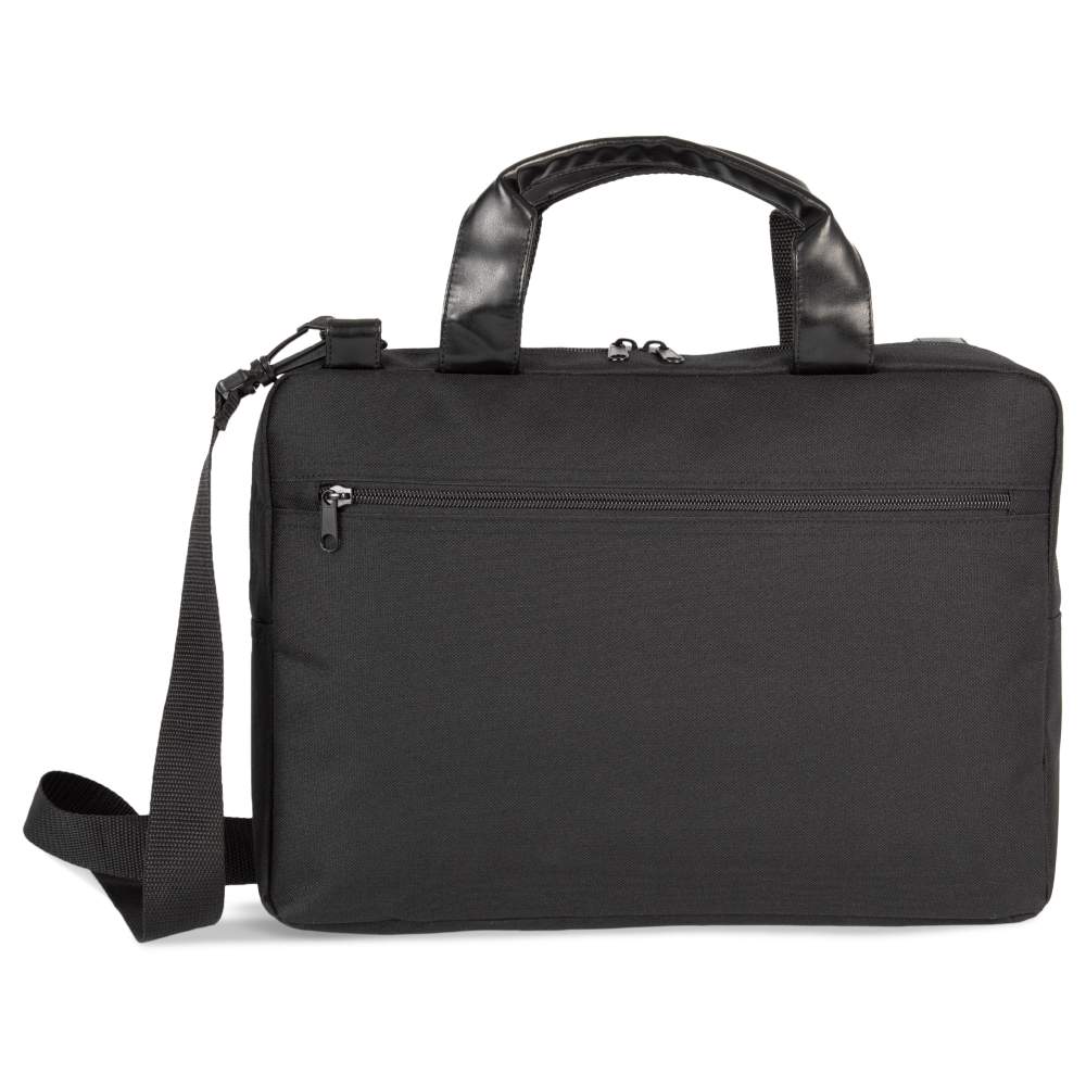 Torba na dokumenty / laptop z poliestru 600D. Jest wyposażona w podwójny przedział na komputer o rozmiarze do 13 cali, zamykany zamek błyskawiczny na przedzie i kontrastowe uchwyty. Można go nosić za pomocą amortyzującego ramię, które można zdjąć. Jego pojemność 10 litrów pozwala zabrać ze sobą niezbędne rzeczy. Wymiary: 38 cm x 7 cm x 27 cm. Skład: 100% poliestru.