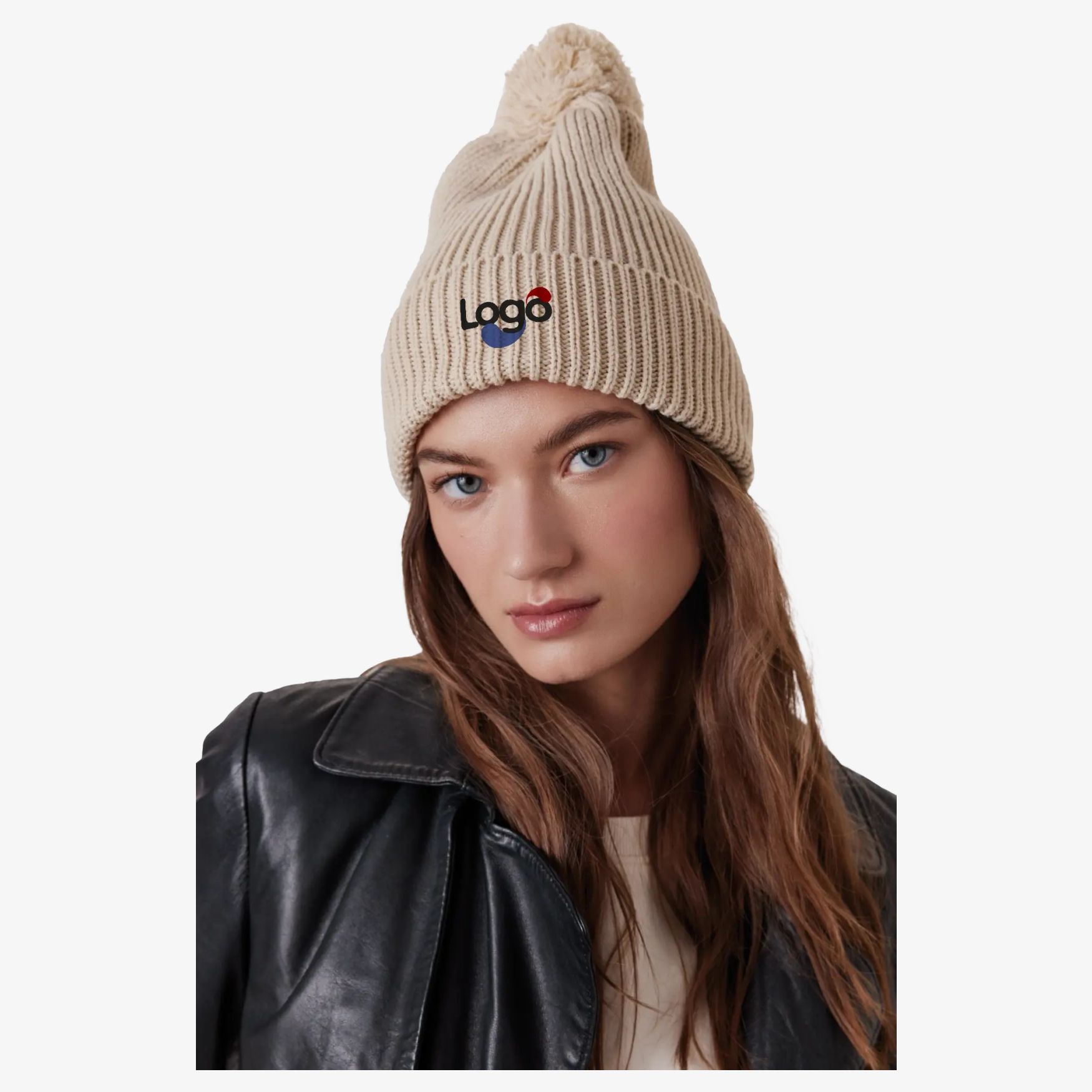 KP959 - Bonnet avec pompon Czapka z pomponem kp959 personalizowana - light_sand