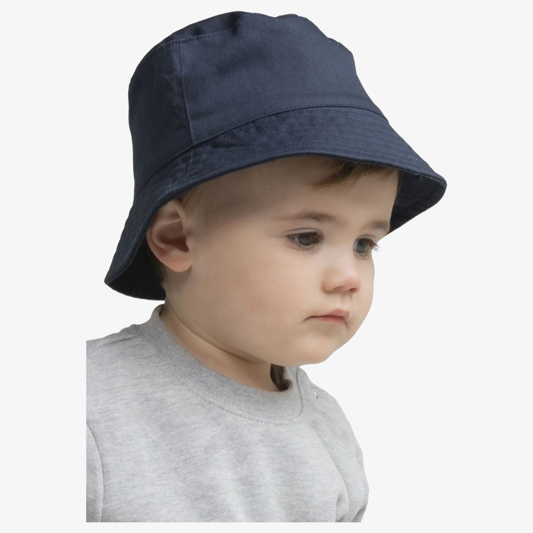 Baby Bucket hat to kapelusz typu bucket dla niemowląt z płaską górą, elastycznym tyłem i szytym rondem. Jego kształt osłania głowę i zapewnia miękkie dopasowanie, odpowiednie do codziennego użytku.