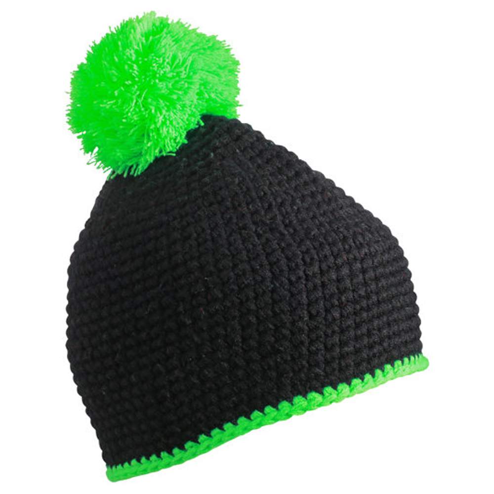 Czapka z pomponem z kontrastowym paskiem mb7964 - Black neon green