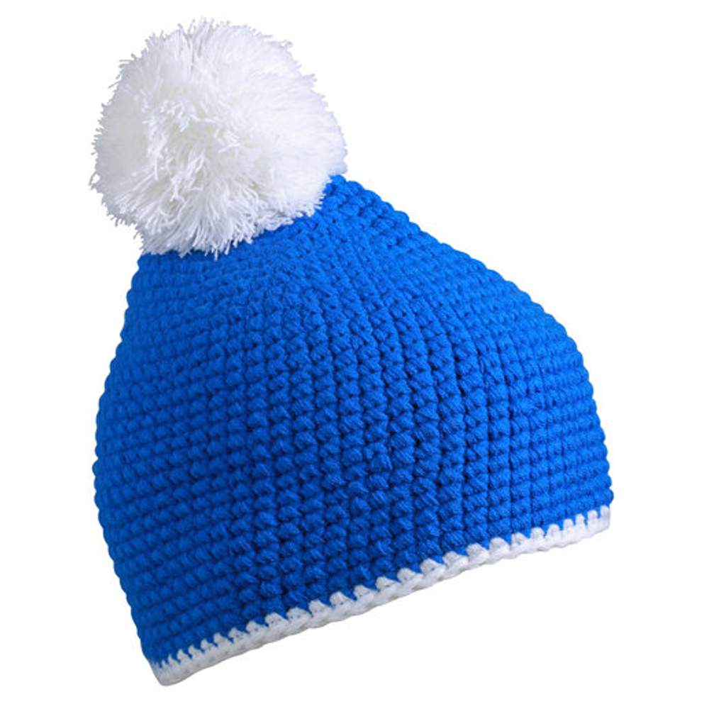 Czapka z pomponem z kontrastowym paskiem mb7964 - Blue white