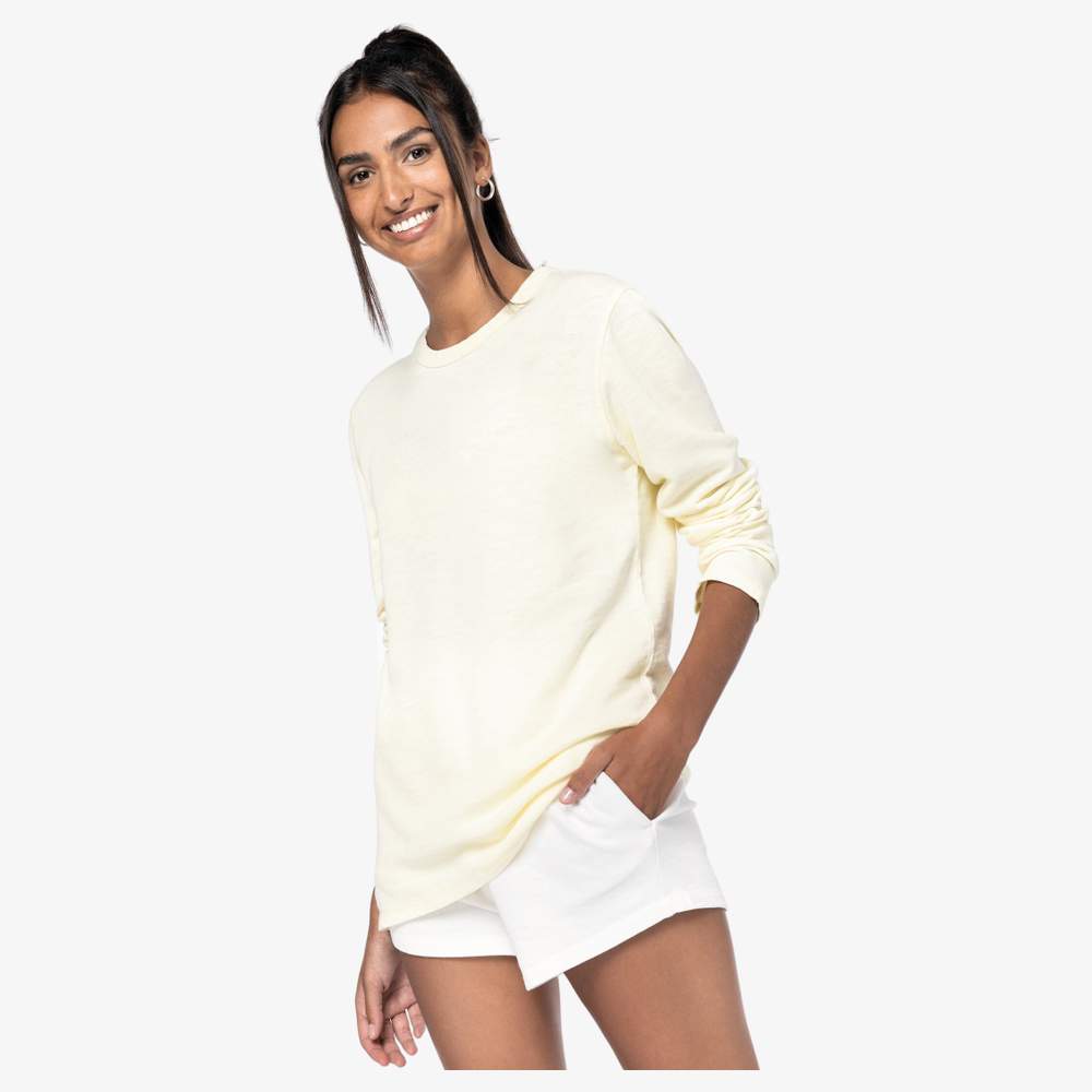 Uniwersalny sweter o dopasowanej kroi. Wewnętrzna podszewka z miękkiego flanelu (Light French Terry). Odzież farbowana po montażu: kolory mogą nieznacznie różnić się między przedmiotami. Kołnierz z obróbką kołnierzową. Punkt przylegania do rękawów, kołnierza, dolnych rękawów i ubrania. Boczne szwy z wstęgami. Wyprodukowany w Portugalii. Skład: 100% bawełna. Możliwość personalizacji haftem dla trwałego i unikalnego efektu.
