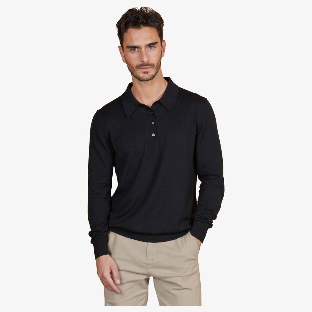 03986 - Stefan Pull z kołnierzem polo w kostce 03986 - noir_profond