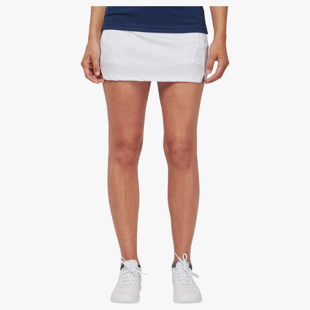 Spódnica tenisowa wykonana z poliesteru interlock dla dobrej wentylacji i swobody ruchu. Ma wkład short dla optymalnego utrzymania i dwie praktyczne kieszenie na piłki, aby mieć swoje akcesoria pod ręką. Elastyczny pas zapewnia komfortowe i dostosowane dopasowanie. Ten model oferuje równowagę między funkcjonalnością a komfortem, aby sprostać potrzebom tenisistów.
