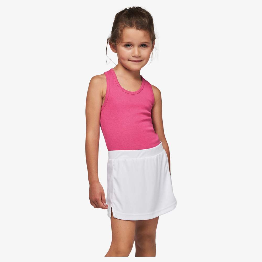 Ta spódnica tenisowa dla dzieci jest zaprojektowana w celu zapewnienia komfortu i swobody ruchu podczas uprawiania sportu. Wykonana z 100% poliesteru interlock, zapewnia dobrą wentylację i przyjemne uczucie na skórze. Wkład short zapewnia dodatkowe podparcie i zwiększony komfort. Jest wyposażona w dwie praktyczne kieszenie na piłki, aby trzymać niezbędne akcesoria pod ręką. Elastyczny pas zapewnia wygodne i dostosowalne dopasowanie.