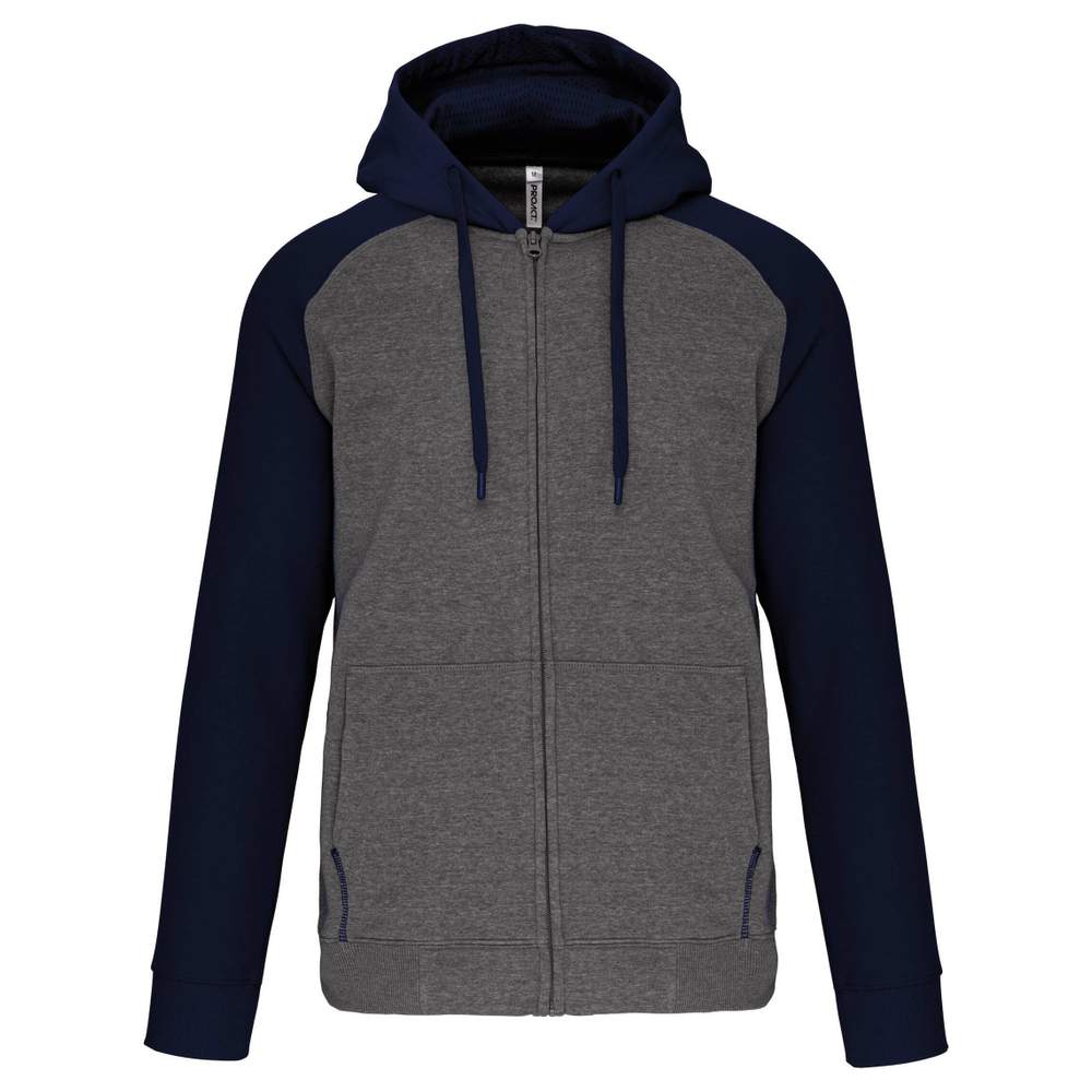 Dwukolorowa kurtka polarowa z kapturem dla obu płci, wykonana z mieszanki poliestru i bawełny. Ten ubiorka zapewnia optymalny komfort dzięki wyściółce z polaru. Zamknięcie na zamek błyskawiczny zapewnia łatwe i szybkie zamknięcie. Rękawy raglan i kontrastowy kaptur dodają stylu. Kaptur wyłożony siatką, która jest w tonie, zapewnia dodatkowy komfort. Dwie kieszenie kangurowe z fluorescencyjną kieszonką na telefon pozwalają na bezpieczne przechowywanie małych przedmiotów. Zintegrowany przejście dla słuchawek pozwala na słuchanie muzyki z wolnością. Manżety i dolna część ubrania z podwójną grubością kantek zapewniają komfortowe i trwałe dopasowanie.