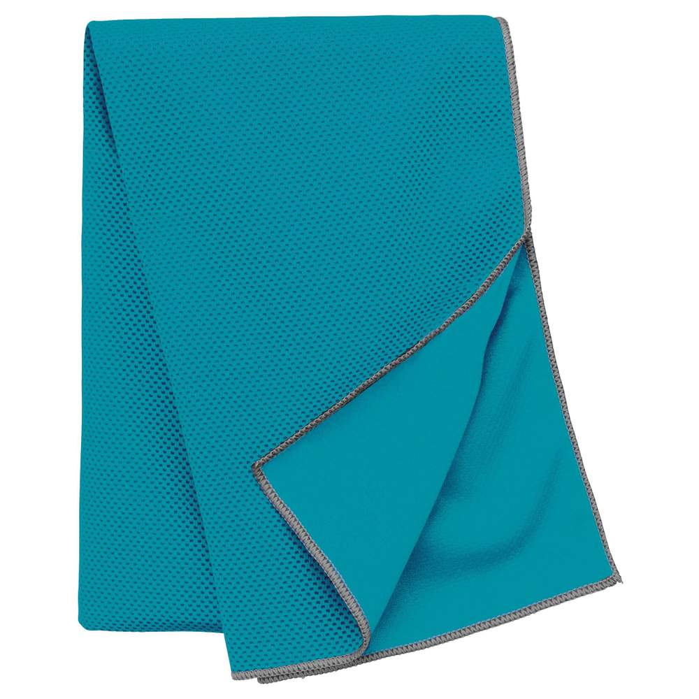 Ta chłodząca serwetka sportowa jest wykonana z 100% poliesteru, aby zapewnić natychmiastowe schładzanie dzięki działaniu namaczania, płukania i wyciskania. Pomaga w regulacji temperatury ciała podczas wysiłku fizycznego lub upalnych dni. Oznaczenia na szwie kontrastowym wzmacniają jej trwałość. Wymiary: 100 cm x 30 cm.