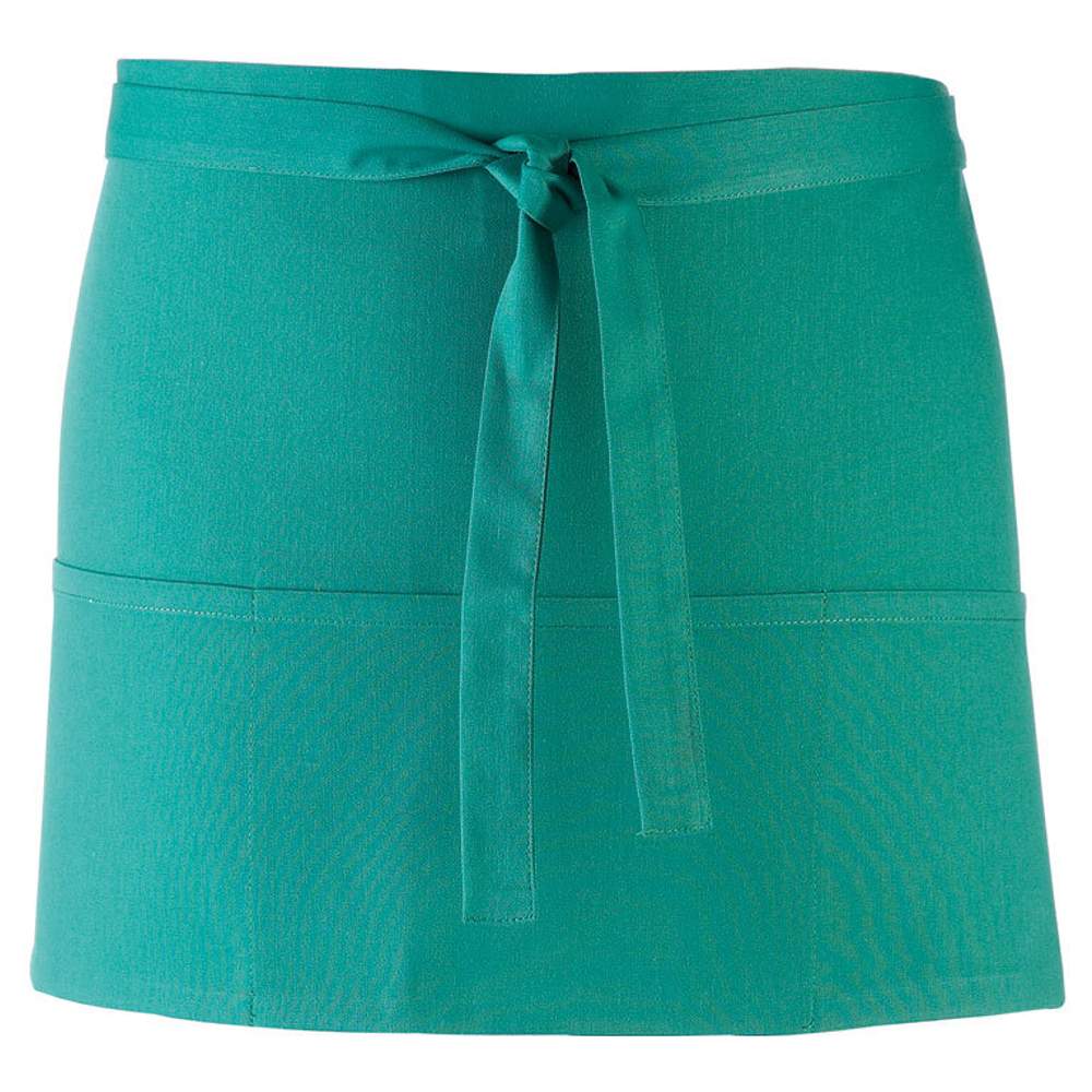 Ten krótki fartuch ma trzy otwarte kieszenie i jest dostępny w szerokiej gamie kolorów. Kieszenie są idealne do przenoszenia terminali płatniczych i tabletów. Wstążka zapięcia w ciągłości tkaniny o długości 90 cm. Szerokość 60 cm, Długość 33 cm. Skład: 65% poliestru, 35% bawełny (z wyjątkiem koloru denim: 70% bawełny, 30% poliesteru twill). Ten fartuch można spersonalizować poprzez haftowanie, co pozwala dodać logo lub wizualne elementy dla jasnej identyfikacji marki.