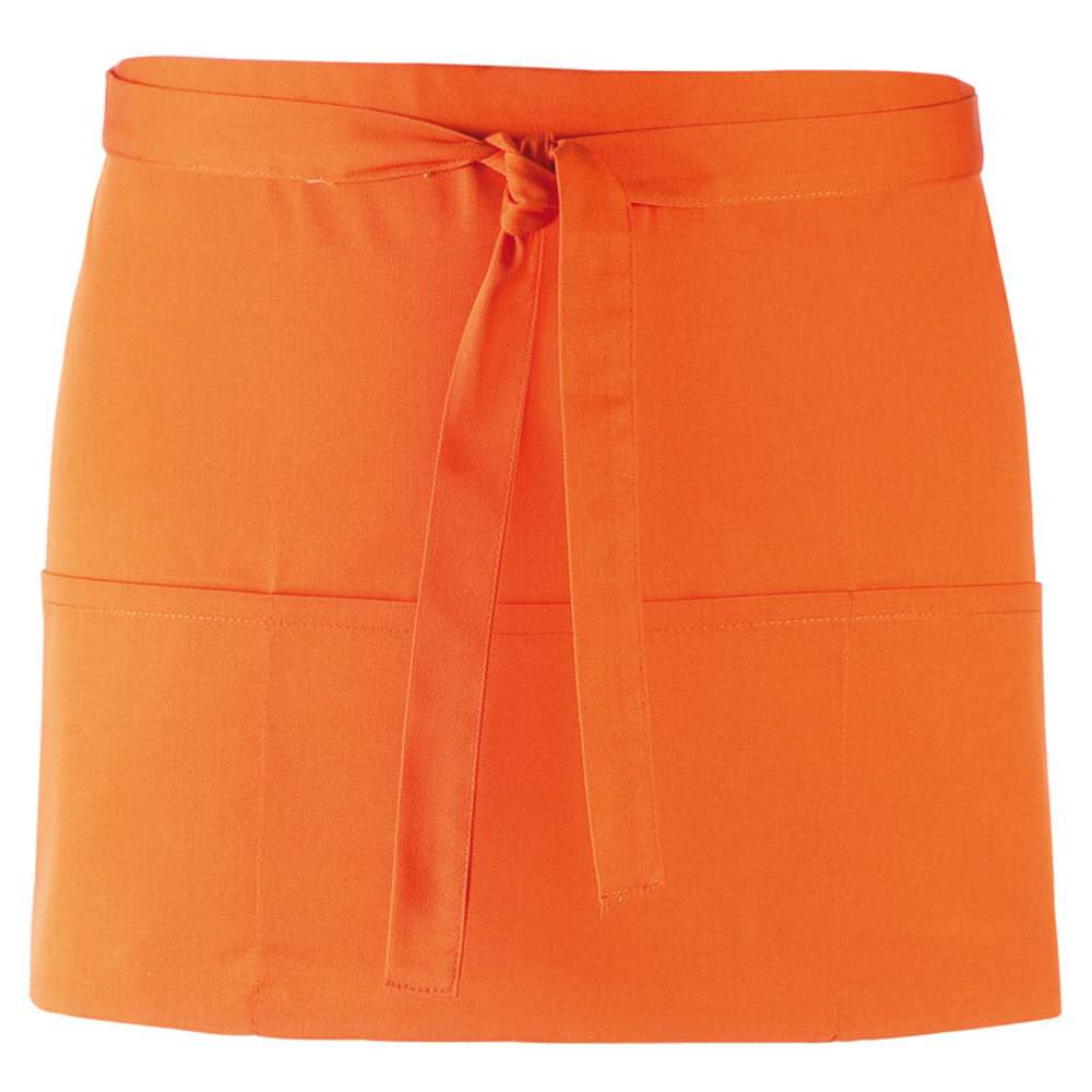 Ten krótki fartuch ma trzy otwarte kieszenie i jest dostępny w szerokiej gamie kolorów. Kieszenie są idealne do przenoszenia terminali płatniczych i tabletów. Wstążka zapięcia w ciągłości tkaniny o długości 90 cm. Szerokość 60 cm, Długość 33 cm. Skład: 65% poliestru, 35% bawełny (z wyjątkiem koloru denim: 70% bawełny, 30% poliesteru twill). Ten fartuch można spersonalizować poprzez haftowanie, co pozwala dodać logo lub wizualne elementy dla jasnej identyfikacji marki.